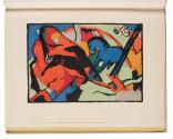 Label TextOne of the seminal figures of Modern art, Vasily Kandinsky was a pioneer of both German Expressionism and abstraction. In 1912 he published the immensely influential Concerning the Spiritual in Art in which he argued that art should be an antidote to the soullessness of modern society. He founded the Expressionist artist collective Der Blaue Reiter (the Blue Rider) with Franz Marc in Munich in 1911 to share and spread this conviction. Kandinsky and Marc published an almanac of the group’s art, philosophy, and influences in 1912. A second, revised edition was published in 1914 on the eve of World War I (1914–18). The cover image by Kandinsky shows a figure on a rearing horse: medieval warrior St. George, the patron saint of Kandinsky’s native Moscow. He is the Blue Rider, representing enlightened art slaying decadence and ignorance. But the War brought an end to Der Blaue Reiter; members Marc and Auguste Mack were killed at the Front in 1914 and Kandinsky was forced to leave Germany for Russia.Published Referencescf. Garvey, Eleanor M., The Artist & the Book, 1860--1960, Boston, 1961, no. 139Exhibition HistoryToledo Museum of Art, Modern Woodcuts, May 5-July 24, 2000.