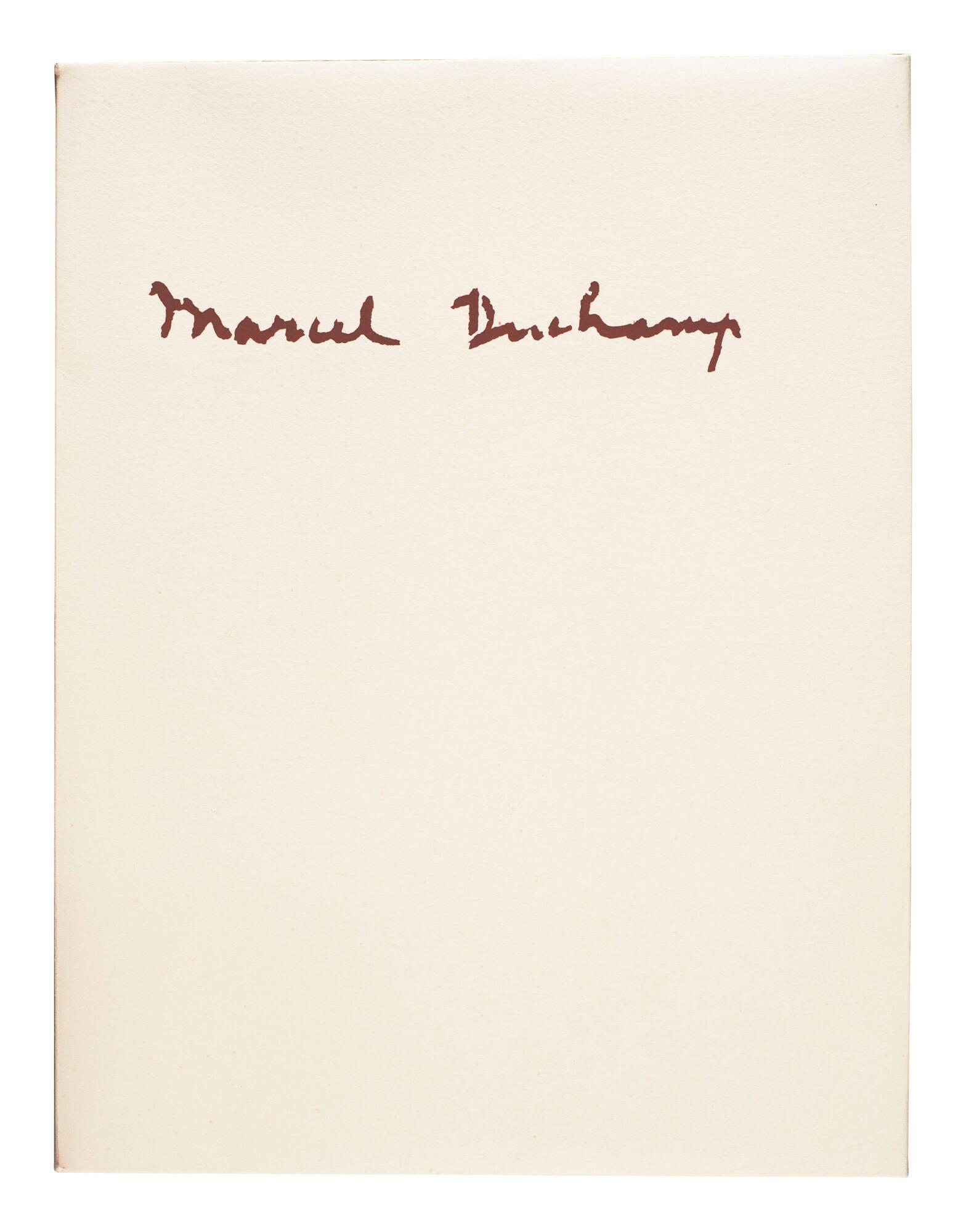 Original prints: facsimile ready-made on the box cover with pochoir lettering; collotype reproduction of "The Large Glass" with pochoir coloring