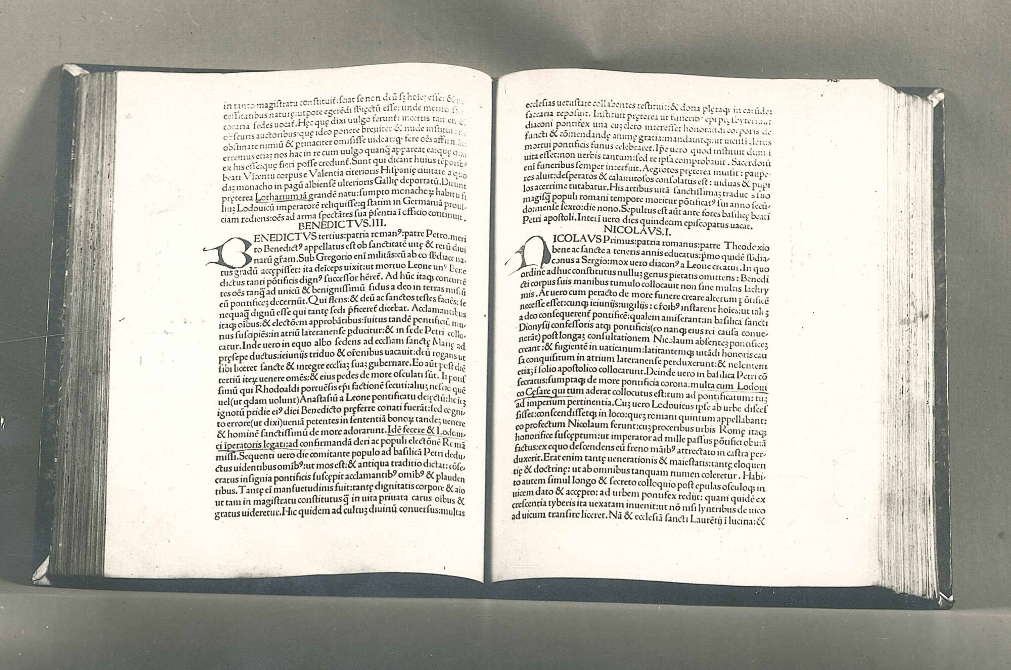 Label TextThis book about the lives of the popes was printed in a lovely Roman type by one of the earliest and best printers of Venice. This is one of the first books to enter the Museums's collection.Membership