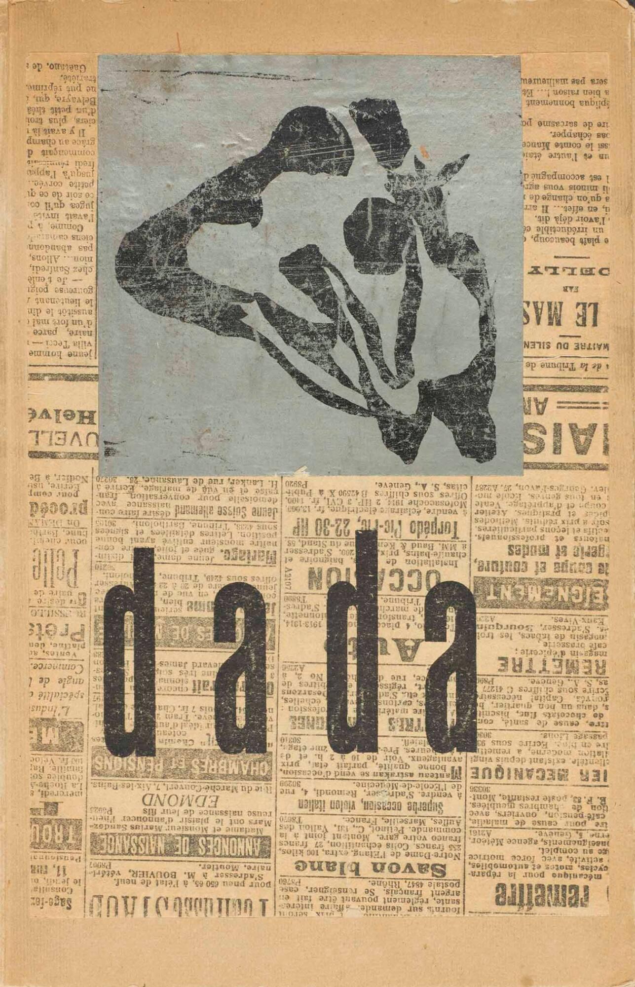 MediumOriginal collage: newspaper, silver paper?, incorporating woodcut (Arp Original print: woodcut (Schad)