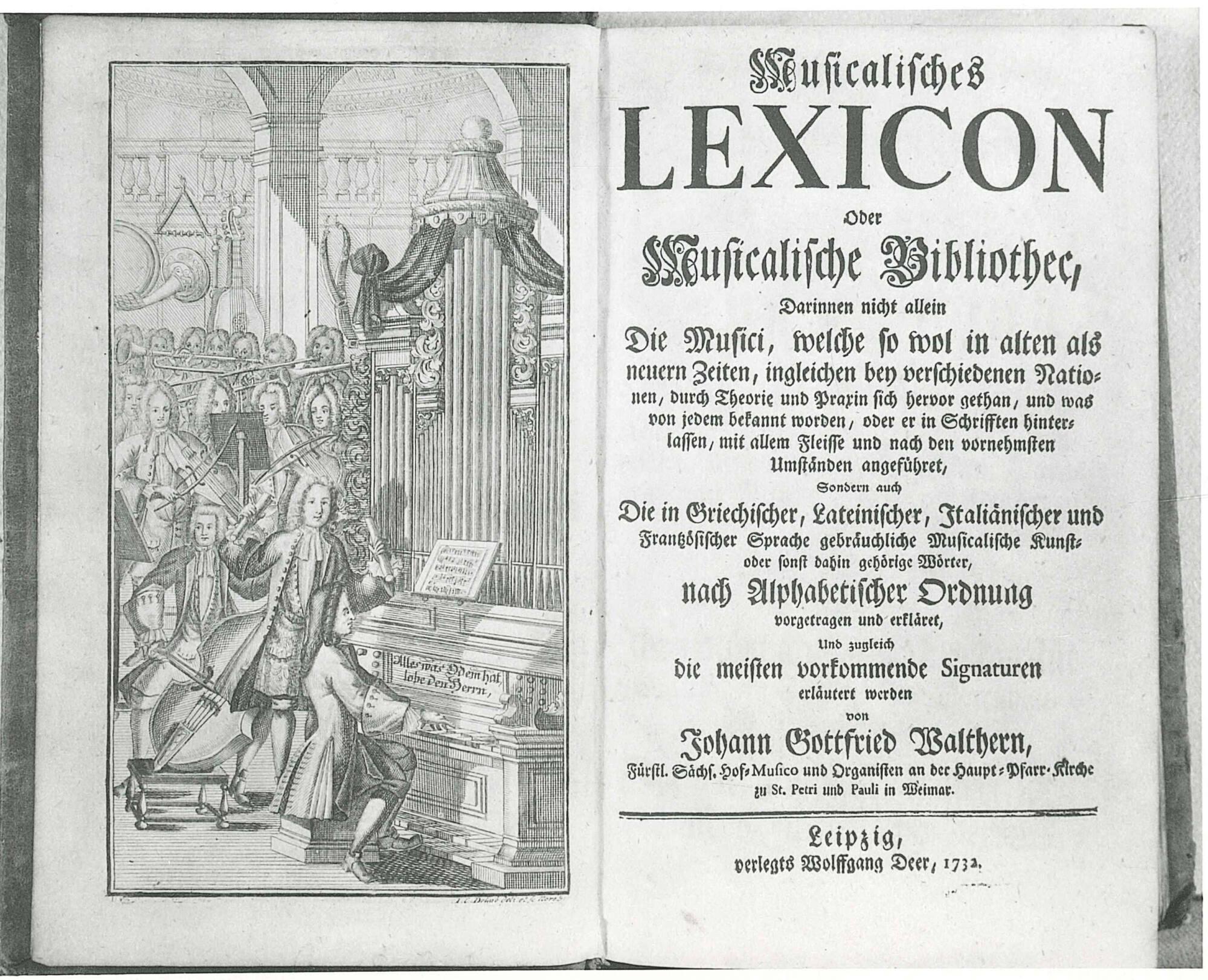 Musicalisches Lexicon oder Musicalishe Bibliothec, darinnen nicht allein die Musici, welche so wol in alten als neuern Zeiten, ingleichen ben verschiedenen Nationen, durch Theorie und Praxin sich hervor gethan