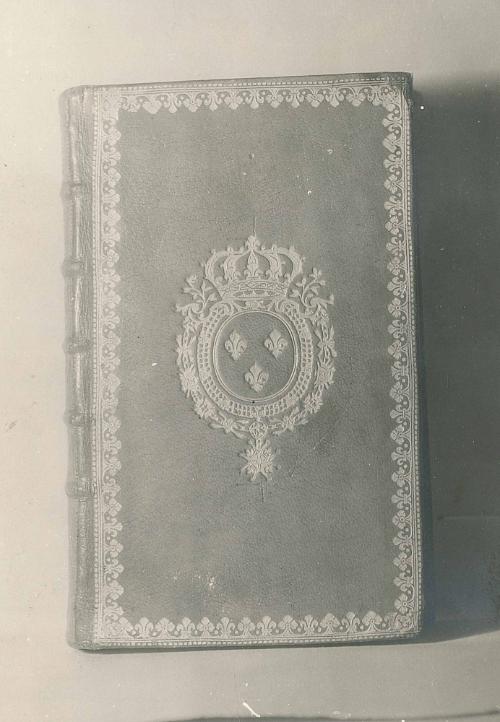 DescriptionRed calf- gold tooled- arms of Louis XV on front and back.