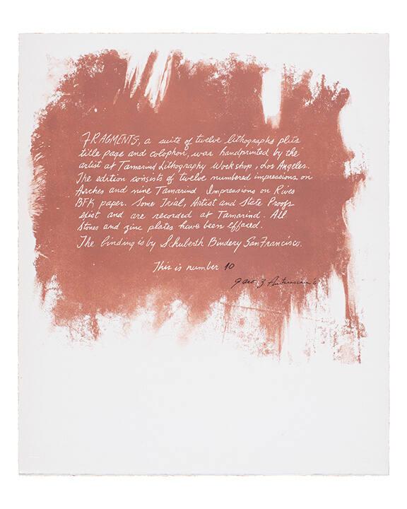 MediumOriginal prints: 14 lithographs (including title page and colophon) in black or in colors on watermarked Arches cream wove paper, including 1 with added gold leaf and white paper collé elements.