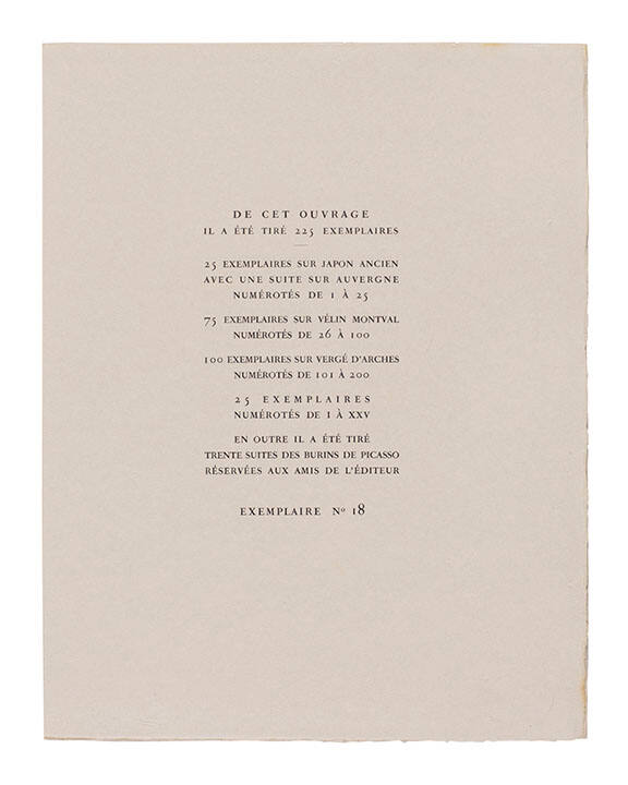 cf. Hogben, Carol, Rowan Watson, editors, From Manet to Hockney: Modern Artists’ Illustrated Books, London, 1985, no. 128, reprs.