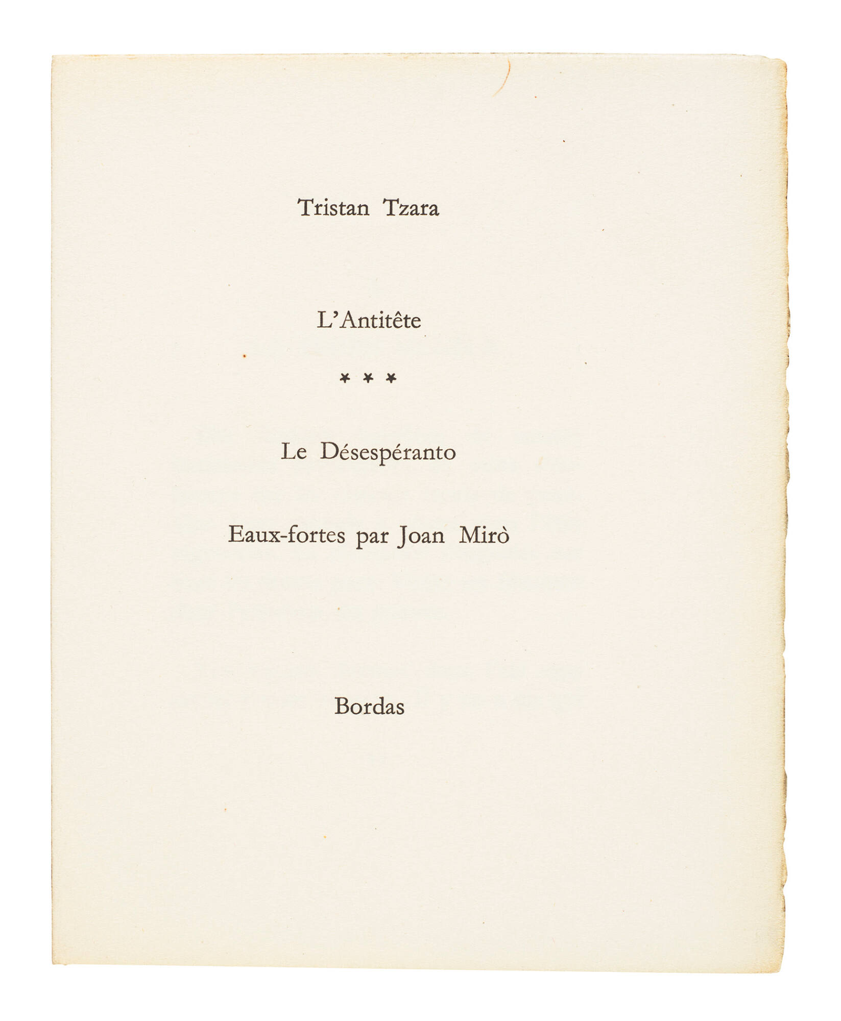 cf. Johnson, Robert Flynn, Artists' Books in the Modern Era 1870--2000: The Reva and David Logan Collection of Illustrated Books, San Francisco, 2001, nos. 57, 125.