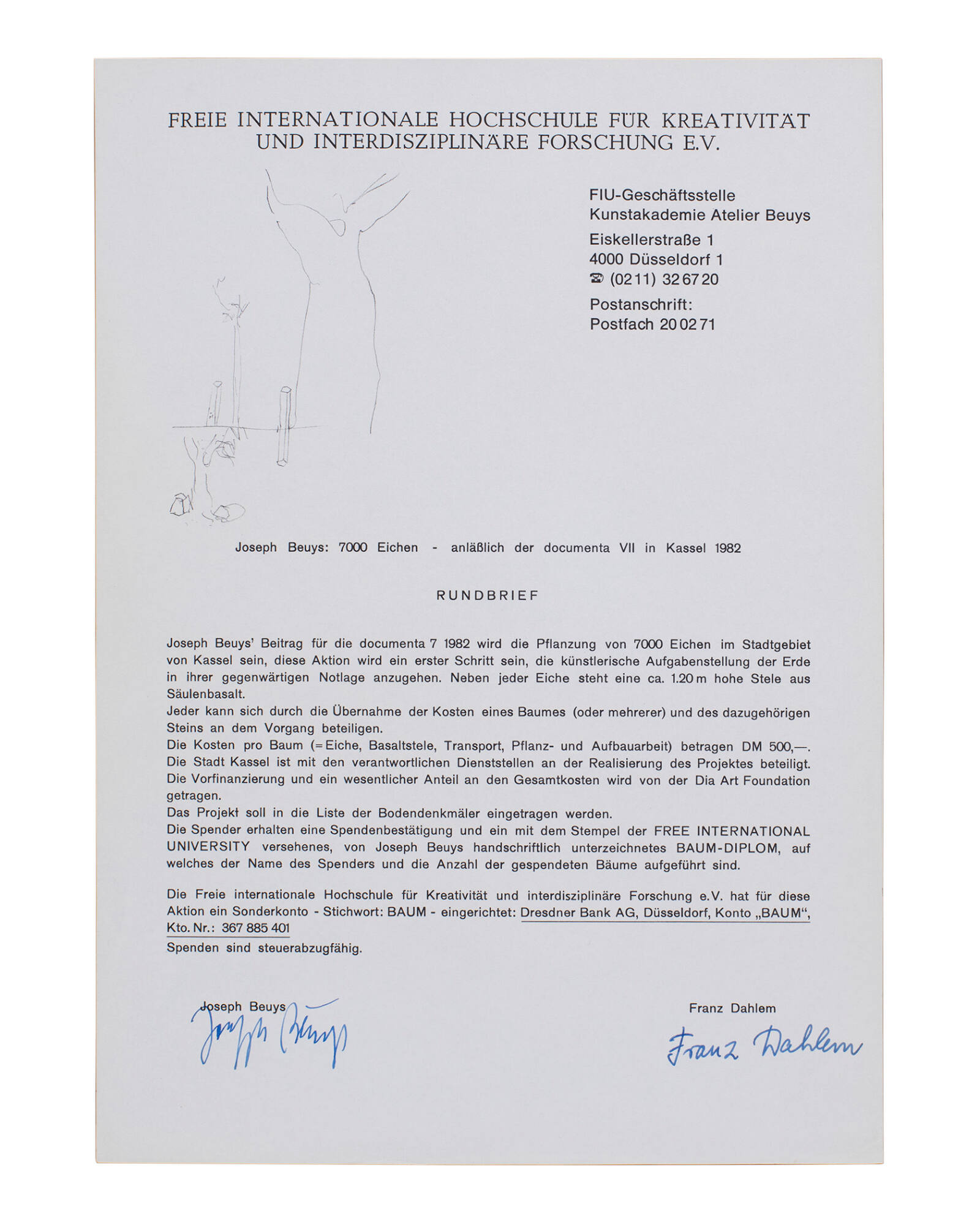 Freie Internationale Hochschule für Kreativität und Interdisziplinäre Forschung E.V.: Joseph Beuys, 7000 Eichen