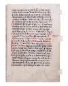 Label TextFor medieval Christians, life was marked not only by cycles of days, months, and seasons, but also by annual cycles of worship, which included prayers, readings, and music. The essential service—the mass—featured elements that were the same every day. But each day’s mass also celebrated specific saints or spiritual events. Medieval churchmen organized the annual cycles of worship in a type of book called a missal that specified both the unchanging aspects of the mass with those unique to each day. The missal leaf displayed above is handwritten on parchment, the processed skin of an animal. It specifies portions of the mass for days in mid-September. The first six lines include a selection from the Gospel of St. John, for example, to be read on September 13. The bottom half of the page cites specific texts for September 14, devoted to Saints Cornelius and Cyprian, whose names are executed in red letters (called rubrics). The use of color is not for decoration, but to indicate important divisions in the mass.