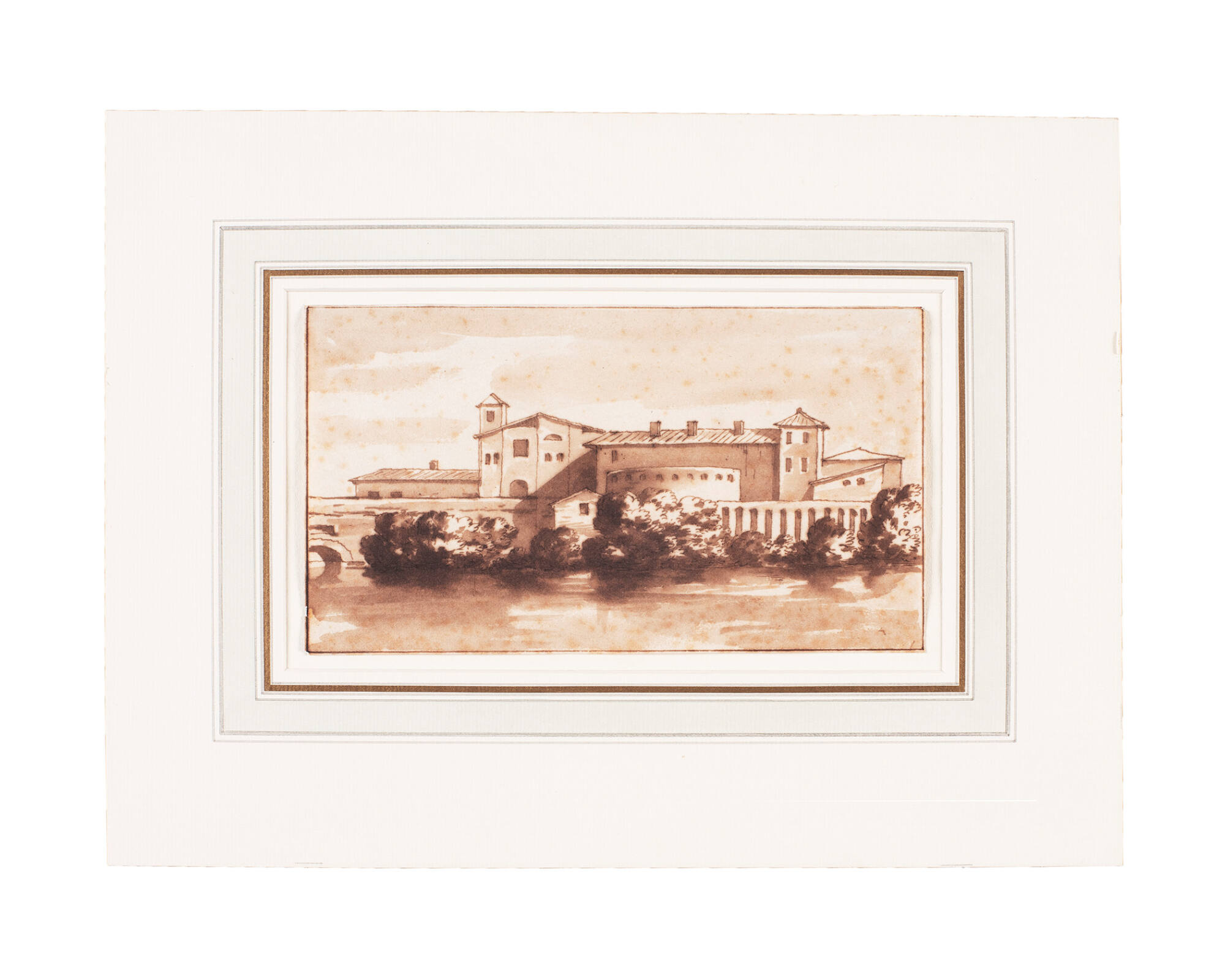 Mediumpen and ink, with ink washes on laid paper