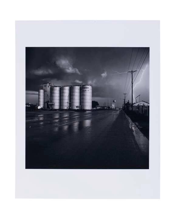 Grain Elevator and Lightning Flash, La Mesa, Texas