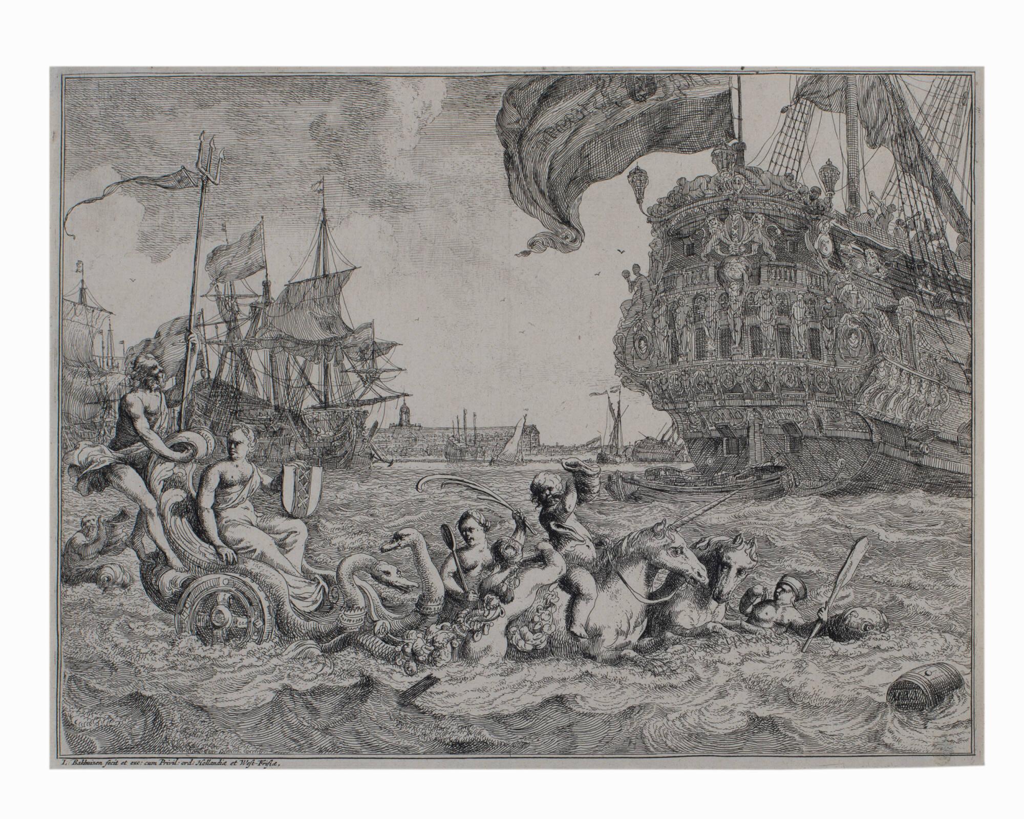 The Personification of Amsterdam Riding in Neptune’s Chariot from The River IJ and Seascapes