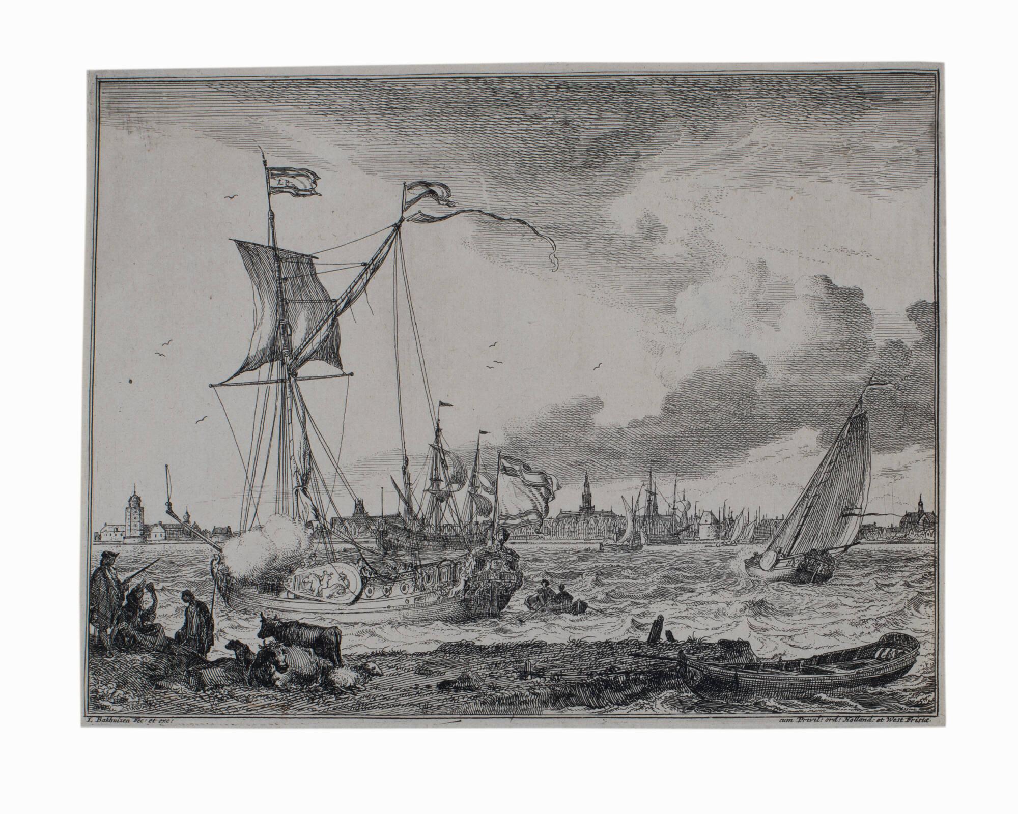 Seashore with Animals: View of Ships and Distant City from The River IJ and Seascapes