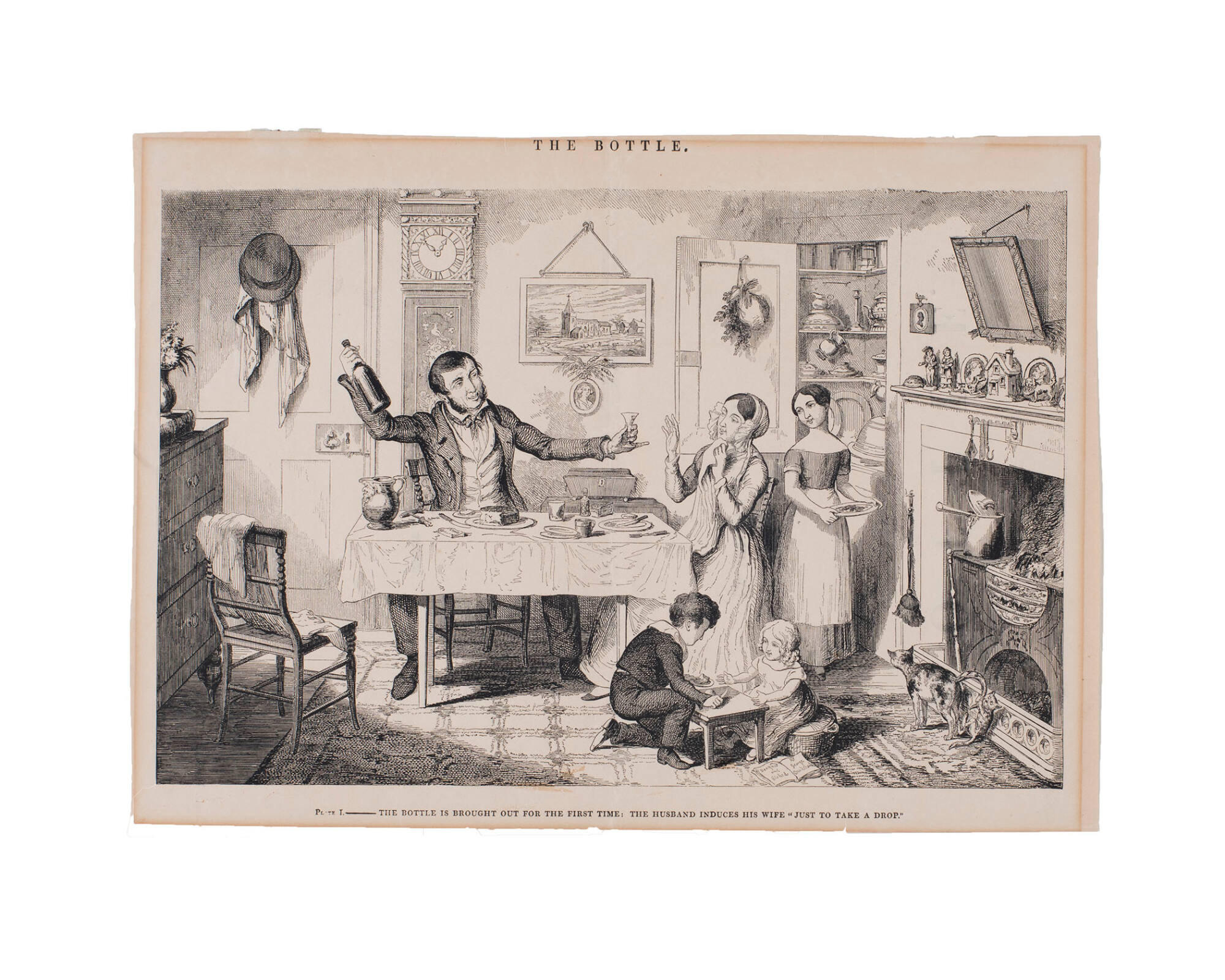 Plate I: The bottle is brought out...,Illustration for The Bottle.