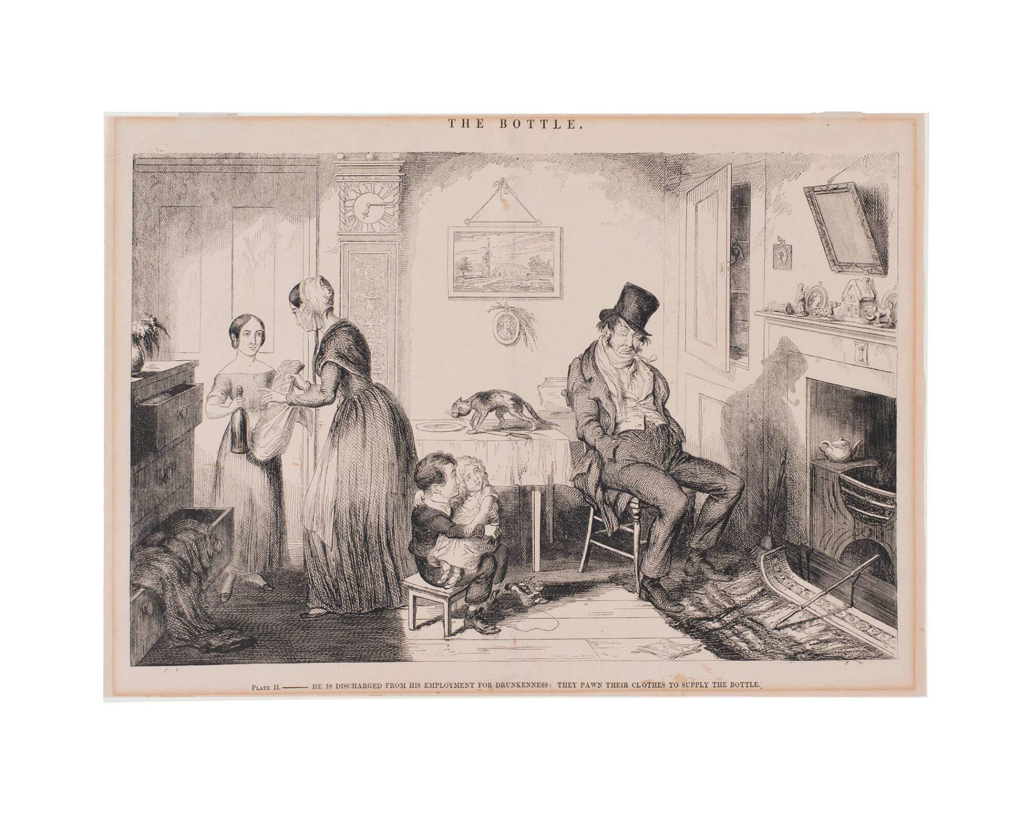 Plate II: He is discharged from his job...,Illustration for The Bottle.