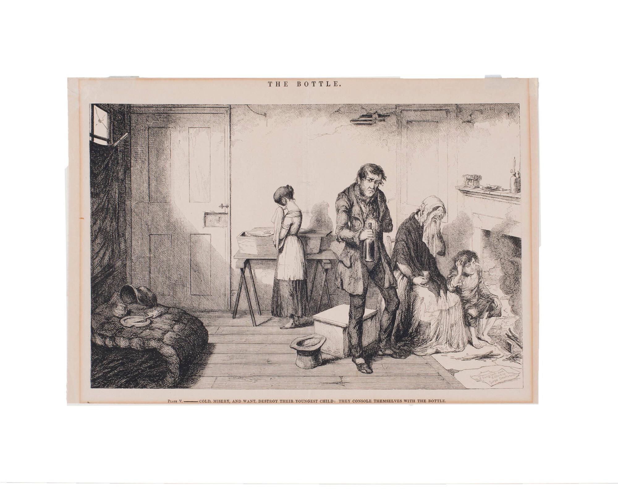Plate V: Cold, misery and want...,Illustration for The Bottle.