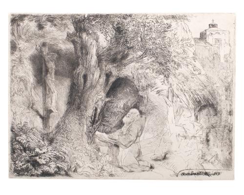 St. Francis Beneath a Tree, Praying (H. 292 II, B. 107, Munz 250 II)