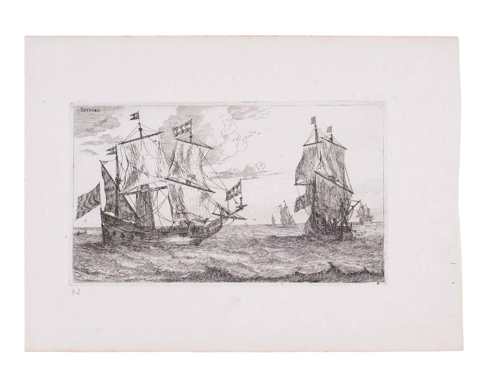 Two Large Sailing Vessels with Flags, plate 4 from Quelques Navieres