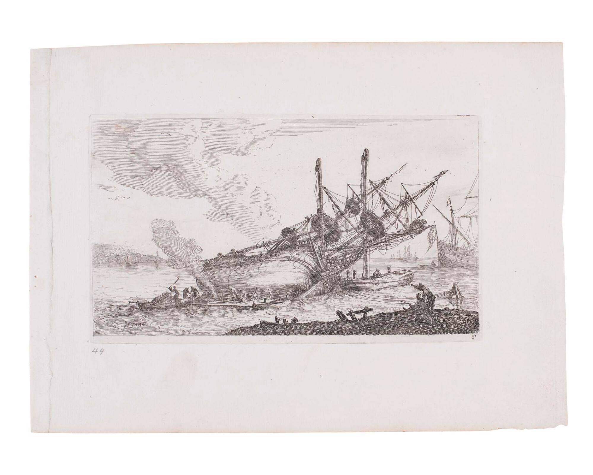 Careened Ship Hauled Down for Hull Resurfacing, plate 6 from Quelques Navieres