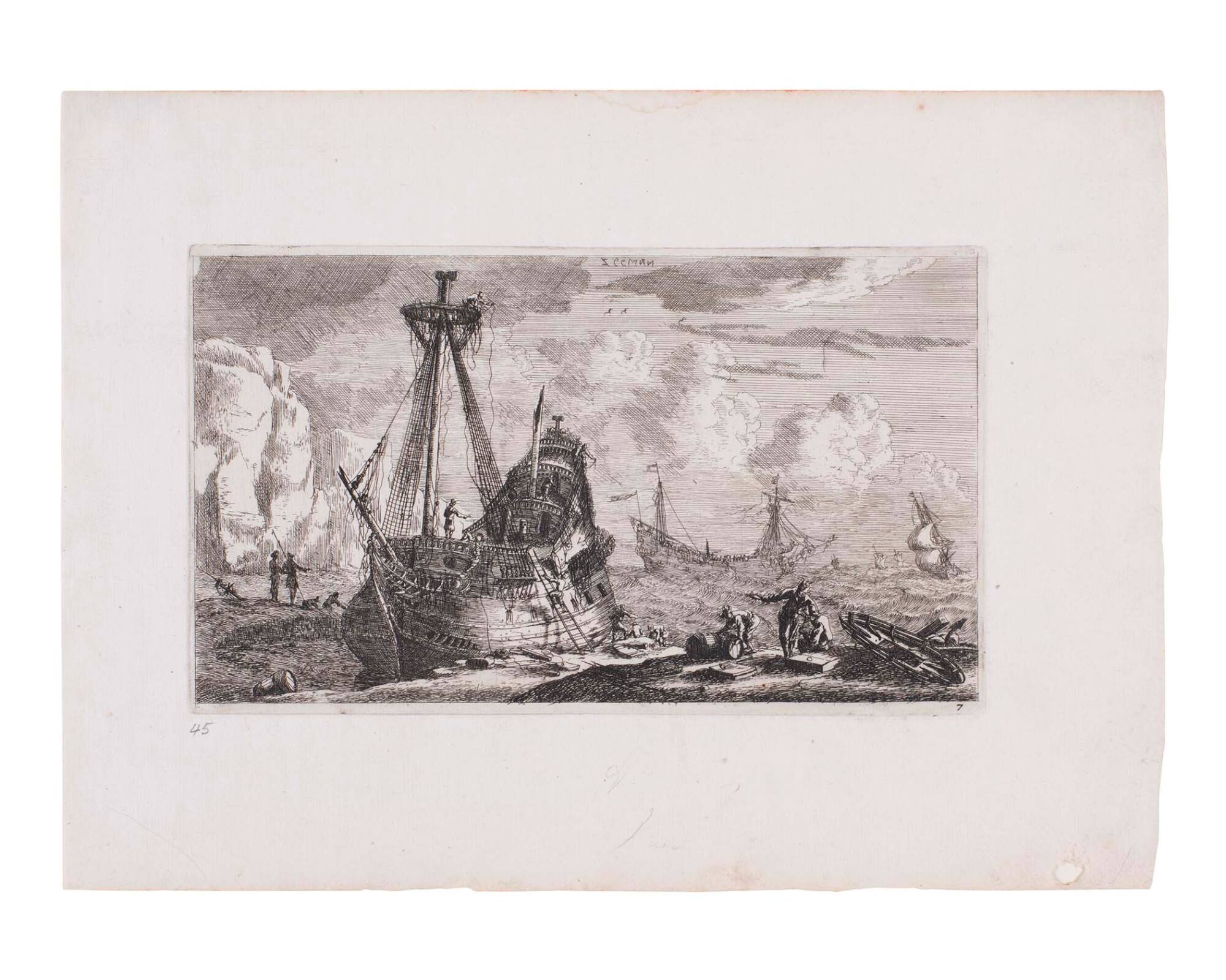 Ravaged Sailing Vessels in a Rocky Bay, plate 7 from Quelques Navieres