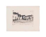 In 1858 Whistler traveled from Paris through Northern Europe. It was his hope to visit Amsterdam, but on this venture he was not well prepared and quickly ran out of funds. Nevertheless, the aborted trip inspired ten prints of rural genre scenes to compliment his early urban studies. Liverdun, France was one of the first stops that he made on his trip. The inspiration for this, and other prints of the period came, in part, from the works of the French artist Charles Émile Jacque (1813–1894; see prints by Jacque in this exhibition). Jacque was particularly adept at naturalism and his etchings of rural France were extremely popular in the mid-19th century. Liverdun was included in Whistler’s French Set of prints published in late 1858.