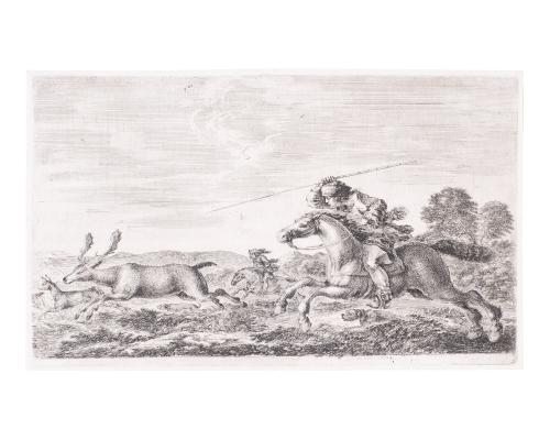 (A doe and two fauns chased by two hunters) from Animal Hunts
