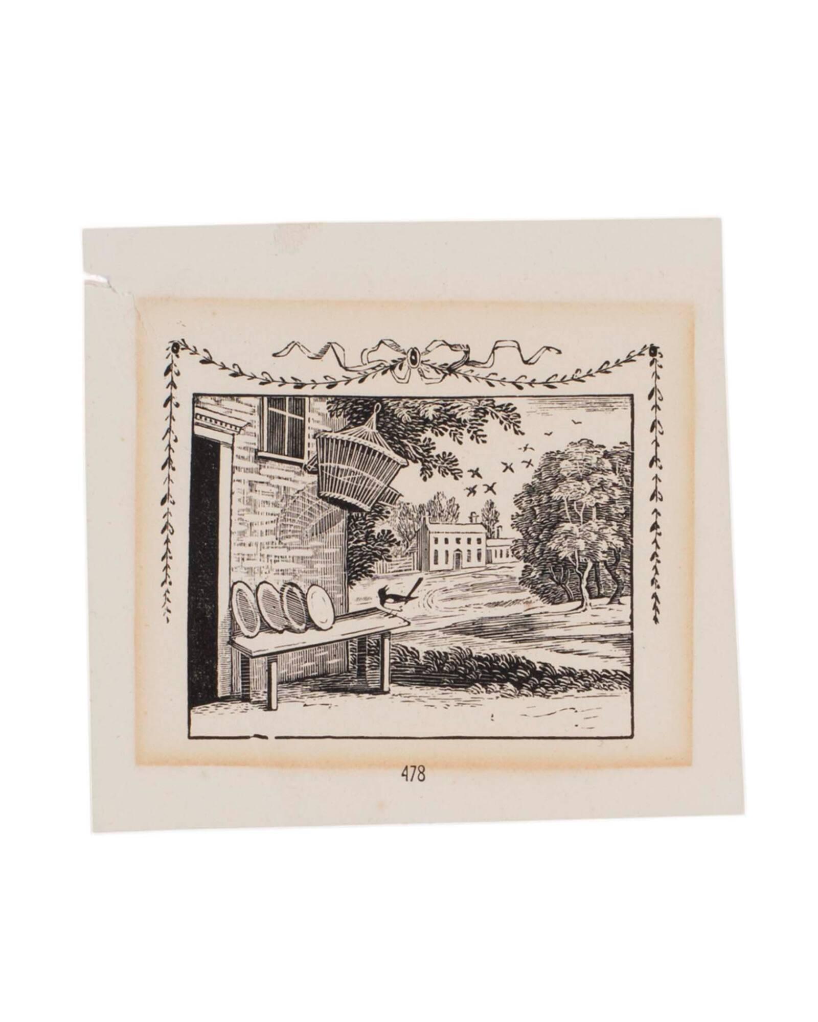 Landscape with Bird on Bench and Hanging Cage