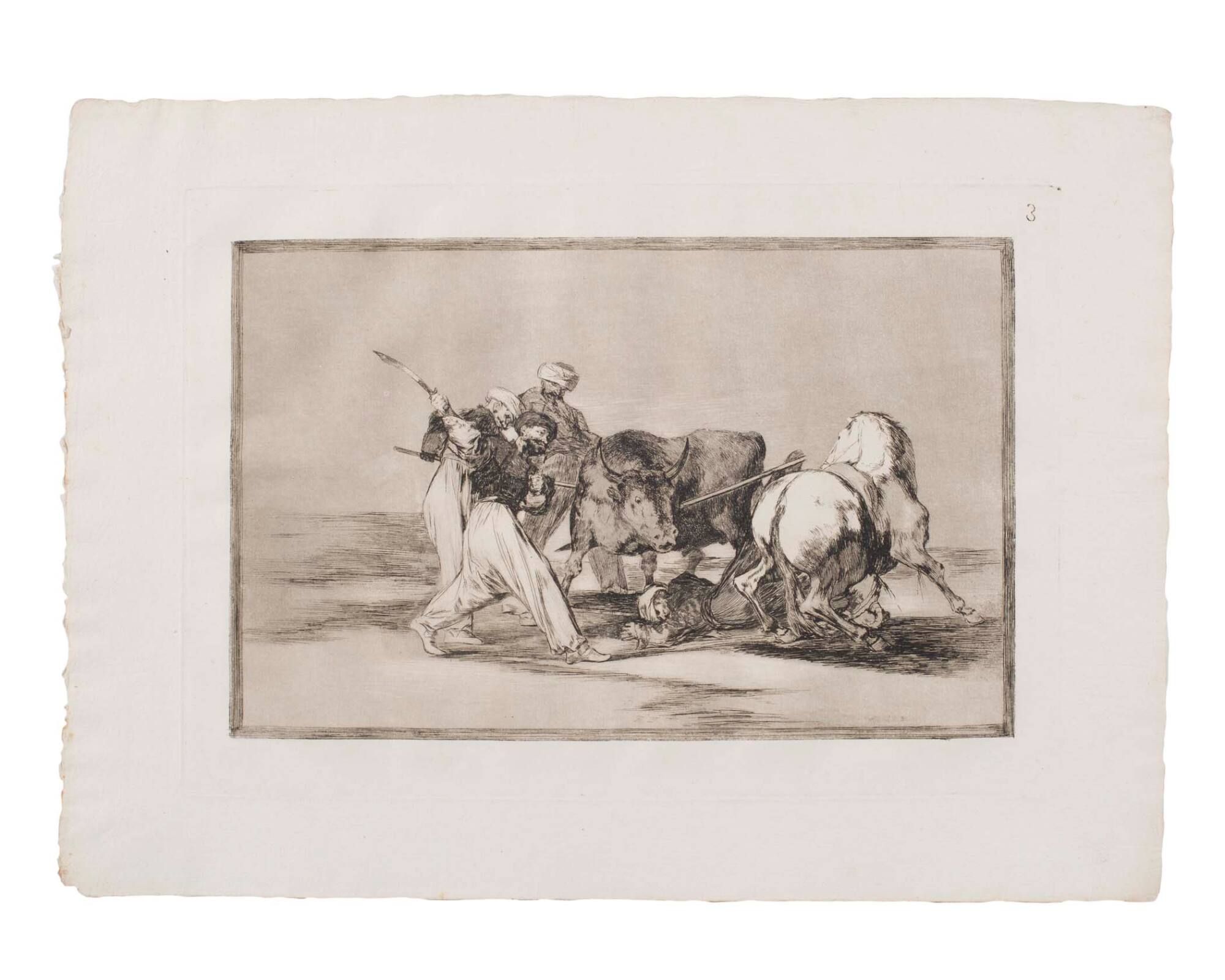 Los Moros establecidos en Espana, prescindiendo de las superticiones de su Alcoran..... (The Moors in Spain fight the bulls with lances, giving up the Koran’s superstitions.) (From "Tauromachios" - No. 3)
