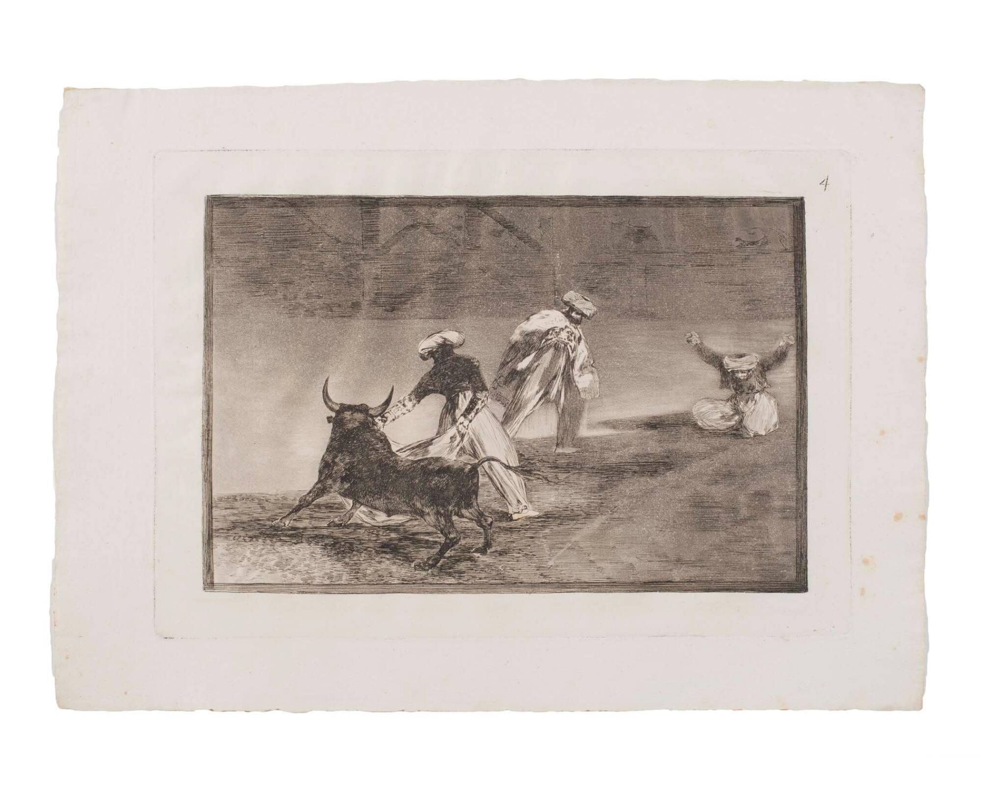 Capean otro encerrado. (They challenge the bull with their cape.) (From "Tauromachios" - No. 4)