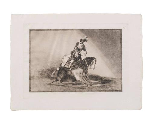 Carlos V. lanceando un toro en la plaza de Valladolid. (Charles V fighting the bull in the plaza at Valladolid.) (From "Tauromachios" - No. 10)