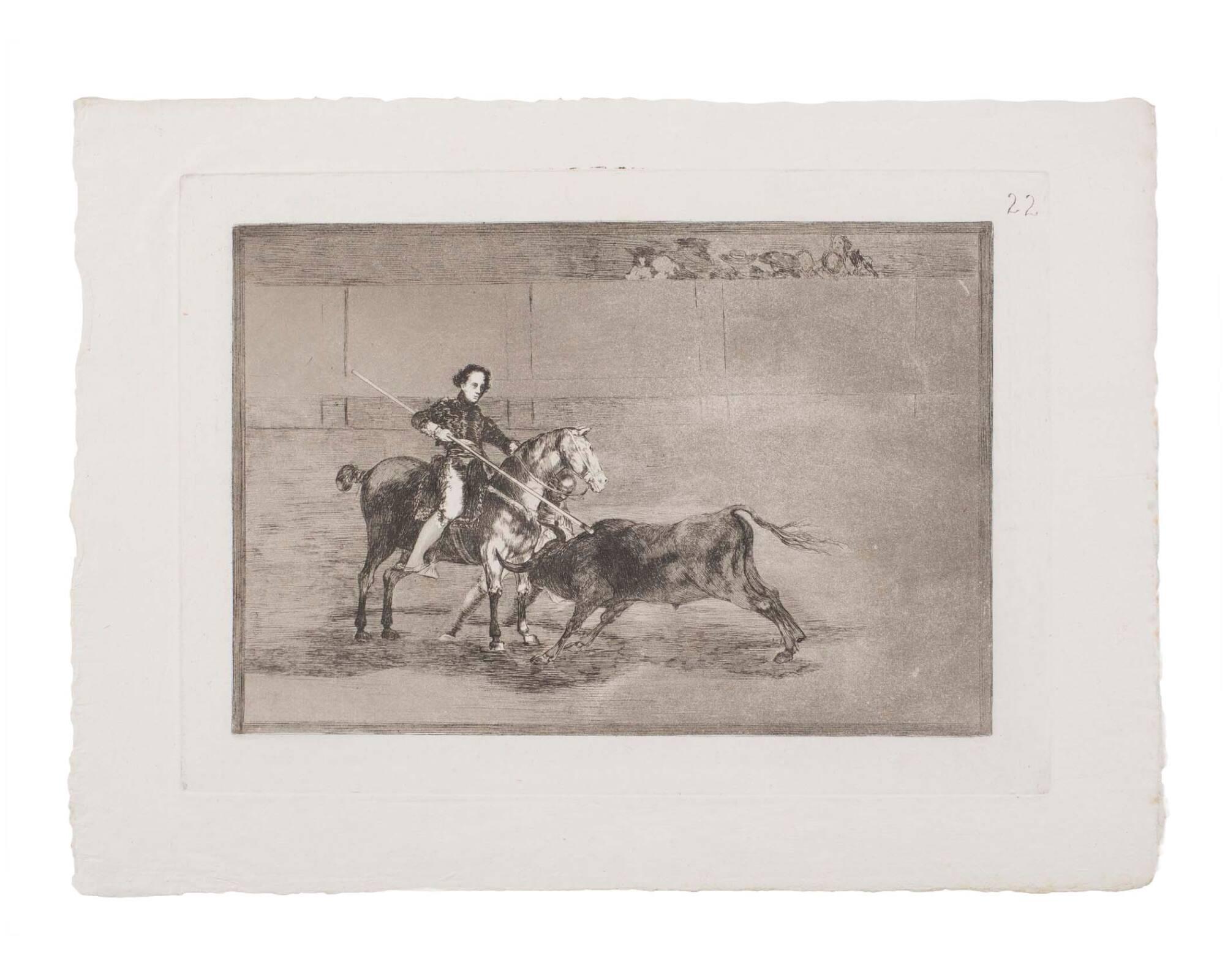 Valor varonil de la célebre Pajuelera en la Plaza de Zaragoza. (Courage of the celebrated Pajuelera in the Saragosse arena) (From "Tauromachios" - No. 22)