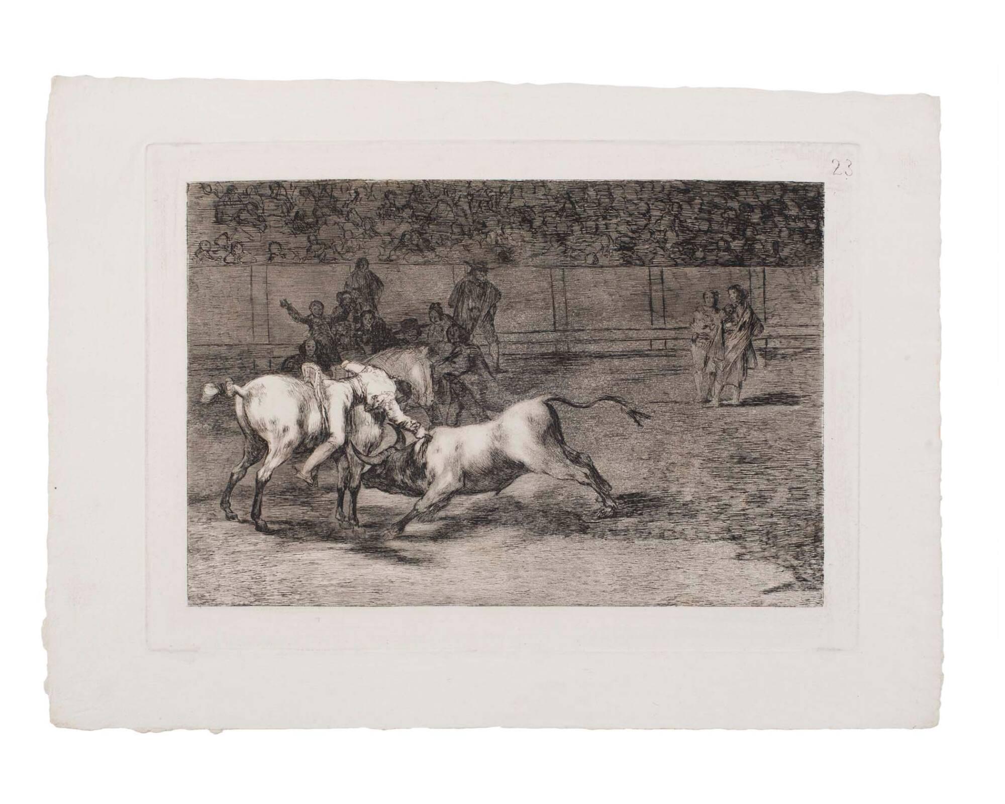 Mariano Ceballos, alias el Indio, mata el toro desde su caballo. (Mariano Ceballos, called the Indian, kills the bull from his horse) (From "Tauromachios" - No. 23)