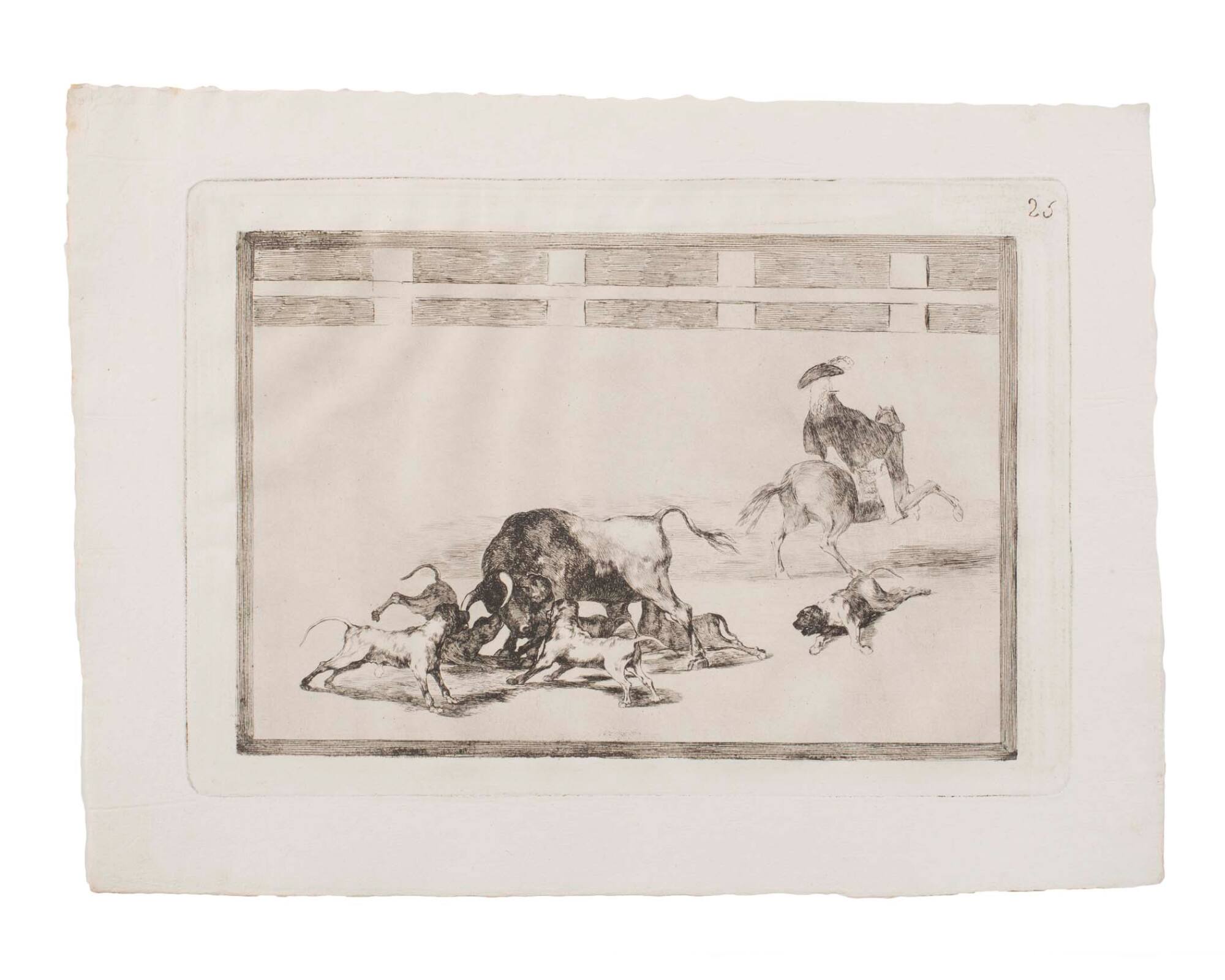 Echan perros al toro. (Setting dogs on the bull) (From "Tauromachios" - No. 25)