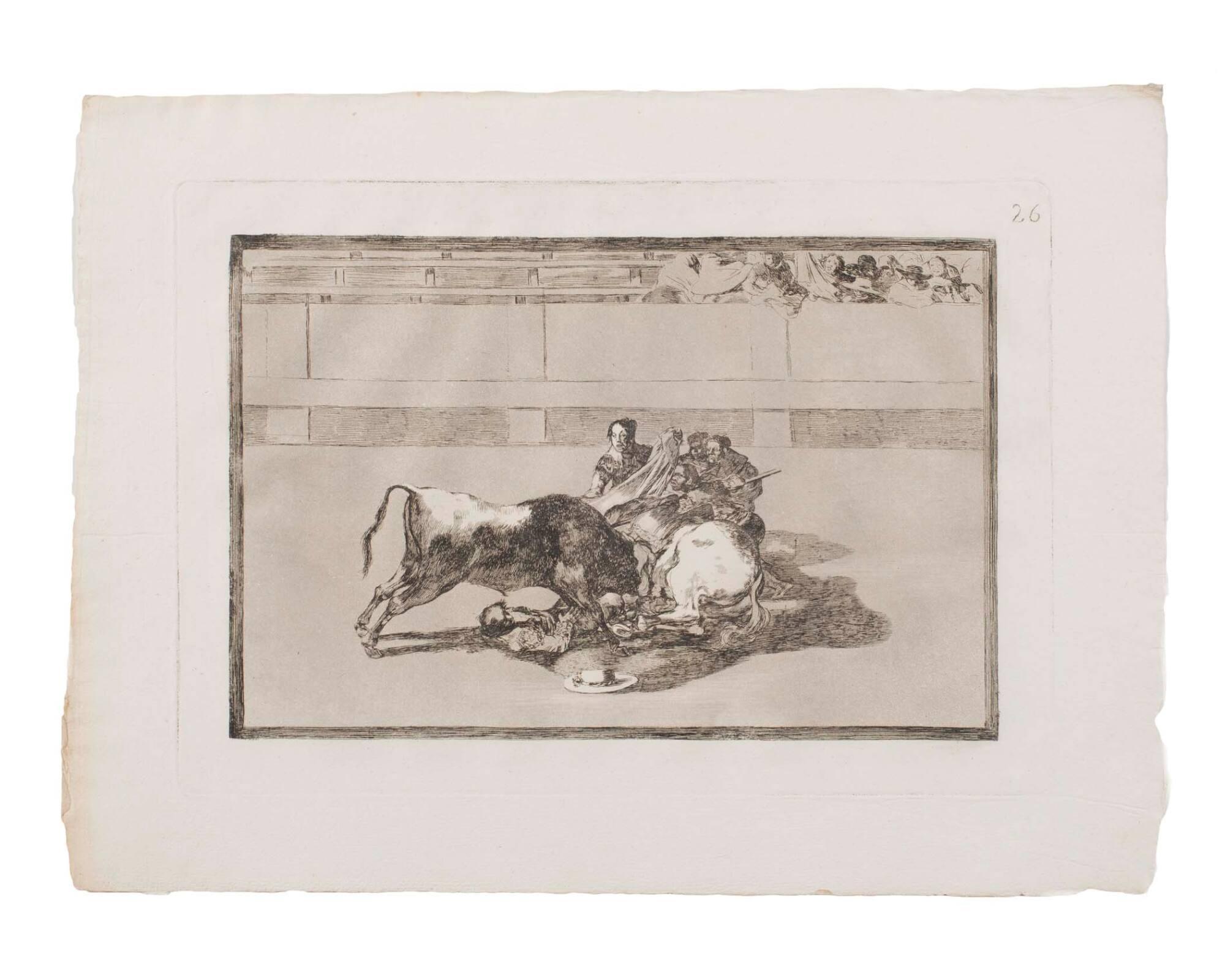 Caida de un picador de su caballo debajo del toro. (Fall of a picador from his horse under the bull) (From "Tauromachios" - No. 26)