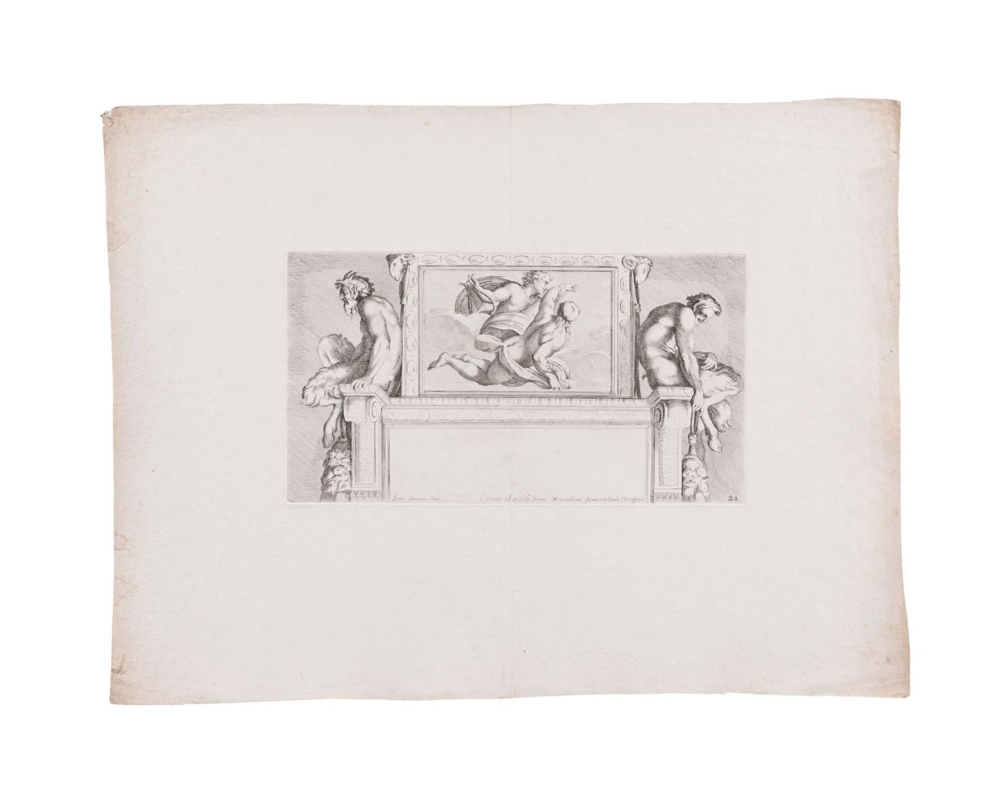 Apollo Carrying Hyacinth. (from Galeria nel Palazzo Farnese in Roma del Sereniss. Duca di Parma... dipinta da Annibale Carracci intagliata da Carlo Cesio.)