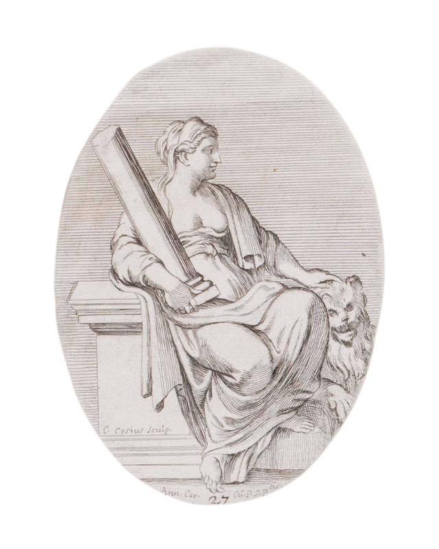Force (seated female). (from Galeria nel Palazzo Farnese in Roma del Sereniss. Duca di Parma... dipinta da Annibale Carracci intagliata da Carlo Cesio.)