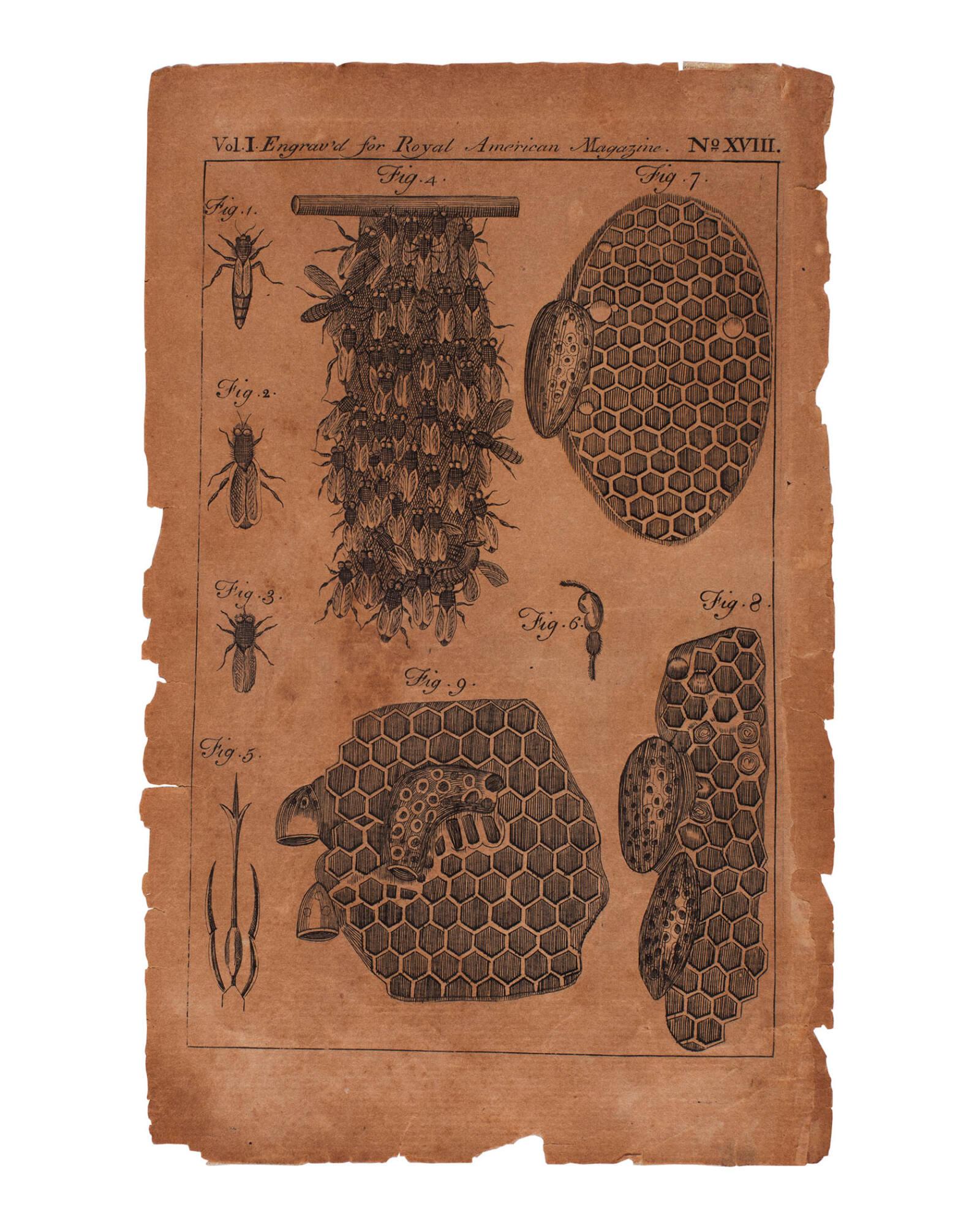 Page of Bees and Honeycomb (after illustration in Universal Magazine, June 1768, vol. 42, pp. 356 ff.