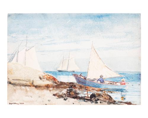 Label TextWinslow Homer was chiefly self-taught as an artist. He began producing illustrations for Harper’s Weekly in 1857 and became an artist/correspondent with the Union Army during the Civil War. He began seriously painting in watercolor in 1873. Homer eventually settled in Maine while spending the winters in Cuba, the Bahamas, Florida, or Bermuda, and the summers in the Adirondacks and Canada. Despite his isolation from the art world, Homer achieved wide recognition in his lifetime, and is ranked as one of the great realists of American painting. Homer spent the summer of 1880 at Gloucester, Massachusetts., where he made more than a hundred watercolors of life in a fishing community.Published ReferencesGoodrich, L., Winslow Homer, New York, 1959, pl. 38.