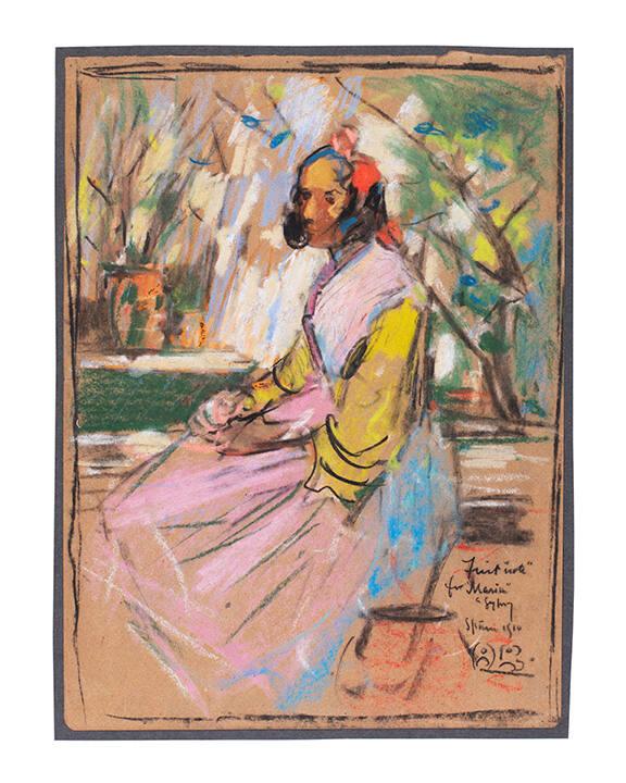 DescriptionPastel drawing on brown paper.