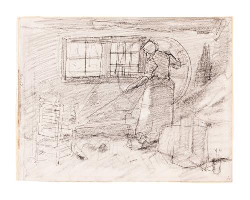 Woman Spinning. Verso: Plough Horses and Figure in a Field (Lugt 143)