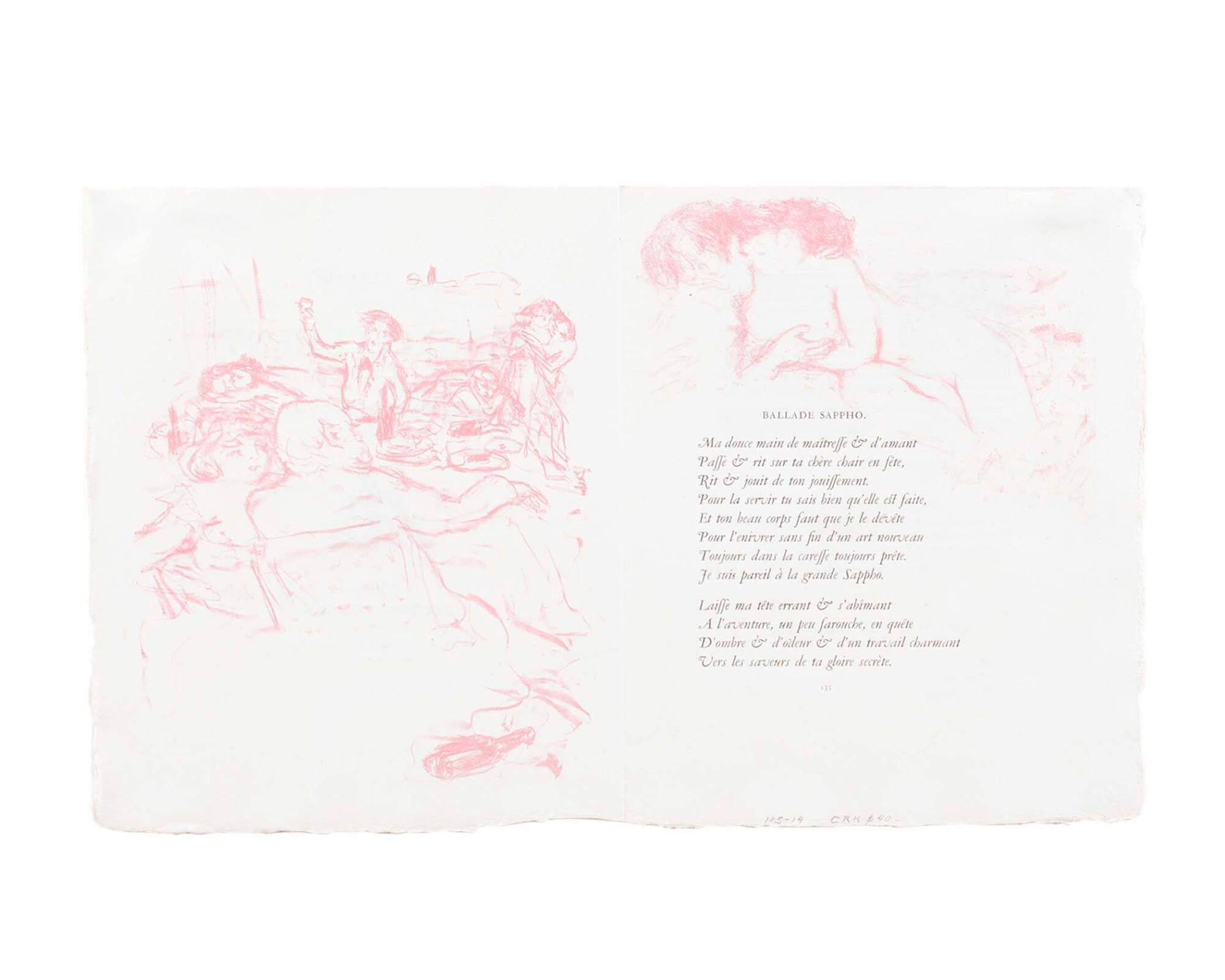 Illustration for Paul Verlaine’s "Parallèllement". Pages 1 and 2, including text of "Ballade Sappho" The reverse includes title page and page of "justification du triage"