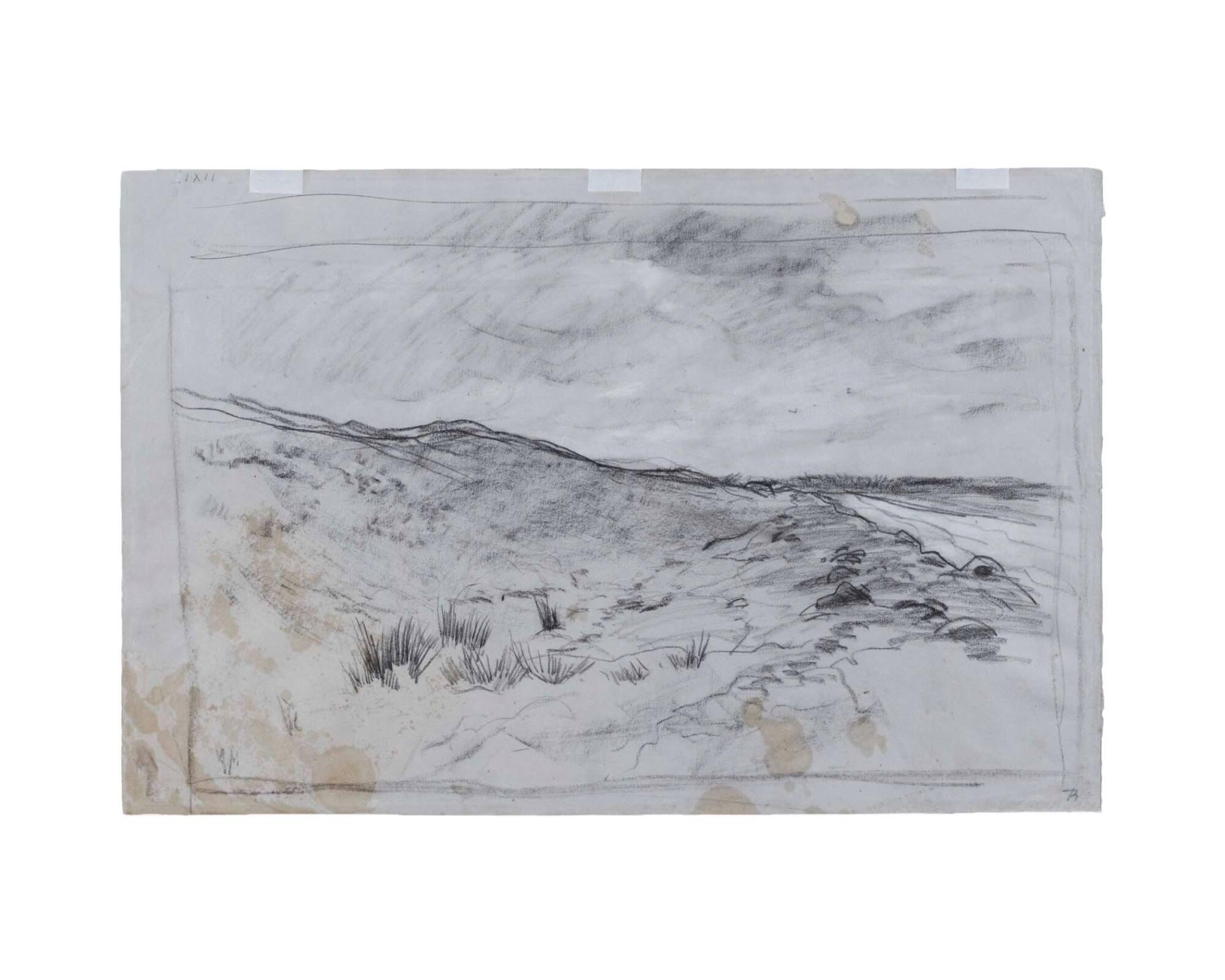 DescriptionCharcoal heightened with white chalk on grey paper.