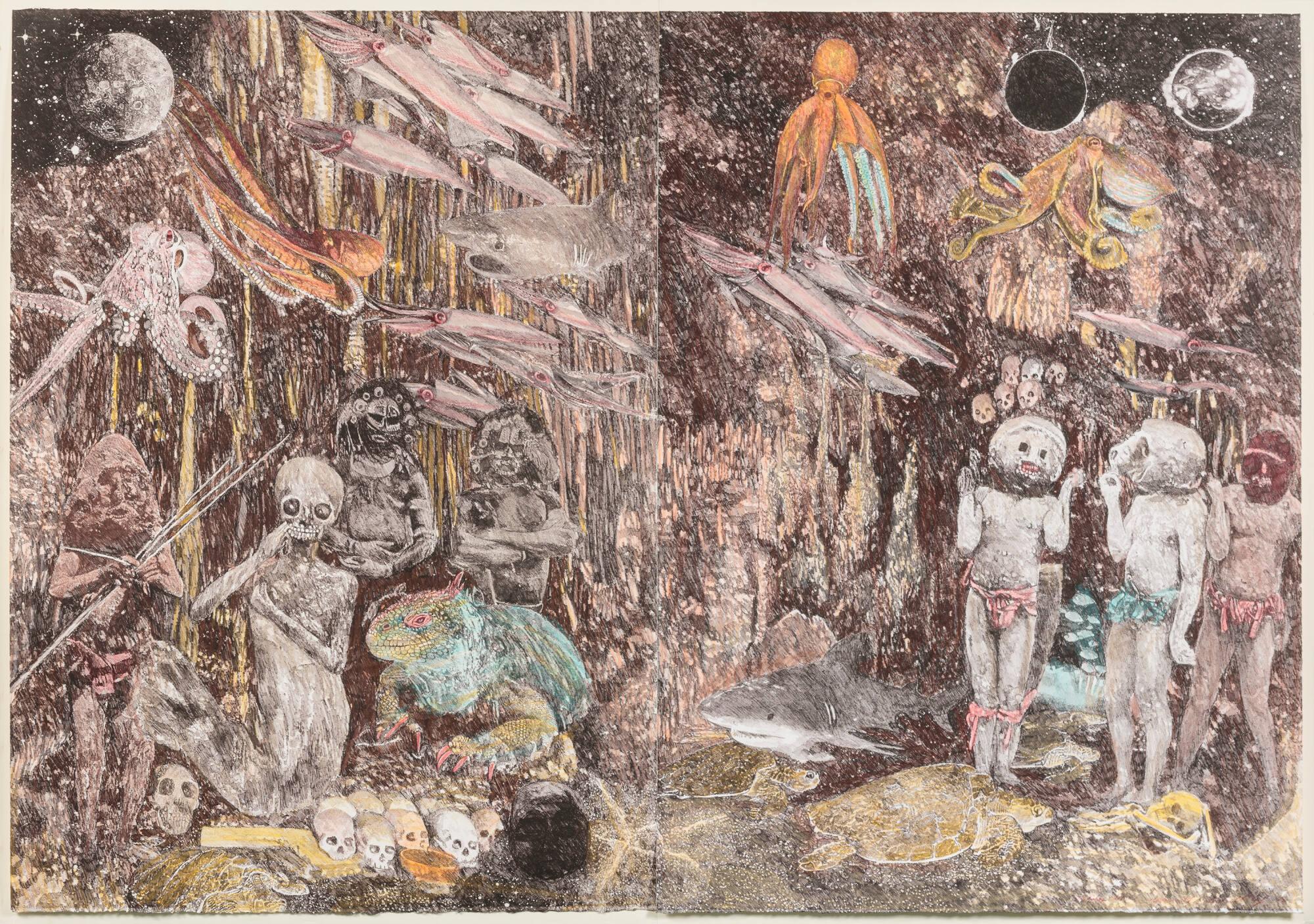 MediumLithographs hand colored with colored pencil (diptych)