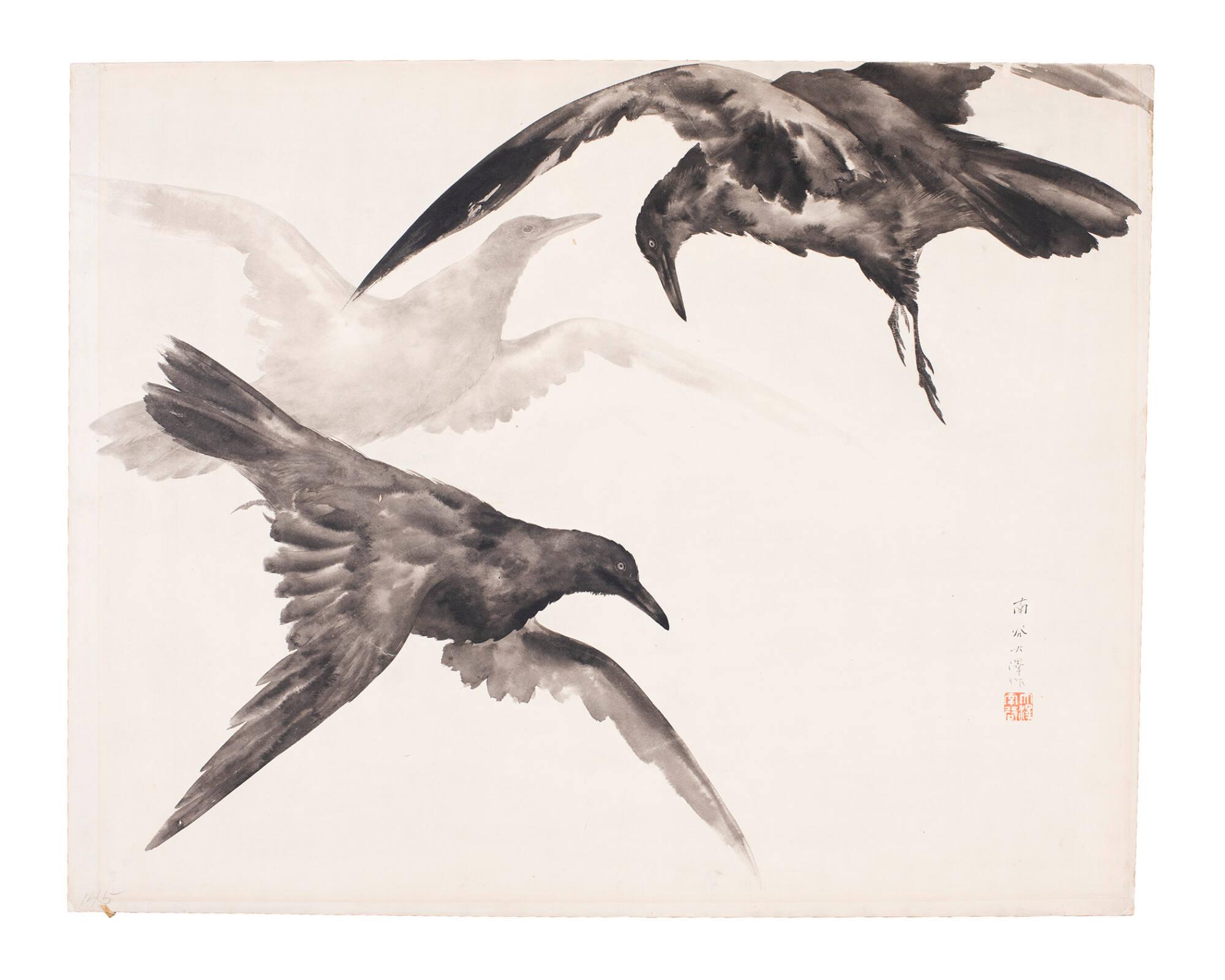 Three Flying Rooks, Two Black, One White