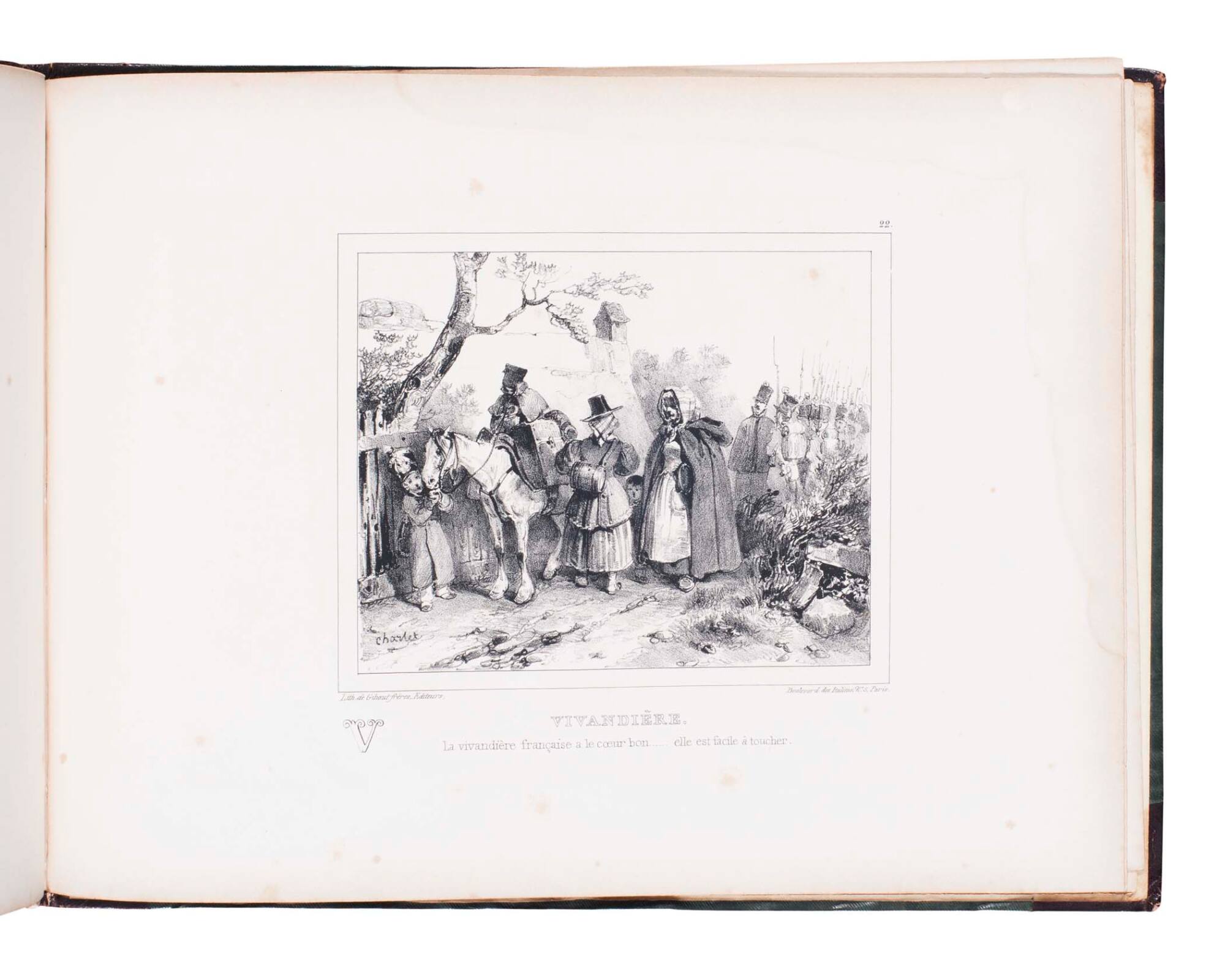 "V" (no. 22) "Vivandière. La vivandière francaise a le coeur bon. . . elle est facile à toucher." from "Alphabet. Moral et Philosophique, à l’usage des petits et des grands enfans"