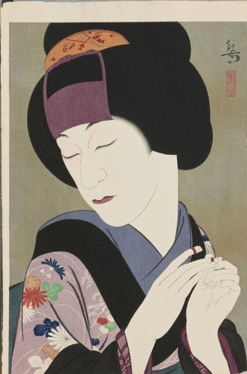 Kataoka Gado IV as Miyuki in the play Asagao Nikki, from “Creative Prints by Kanpō, First Series”