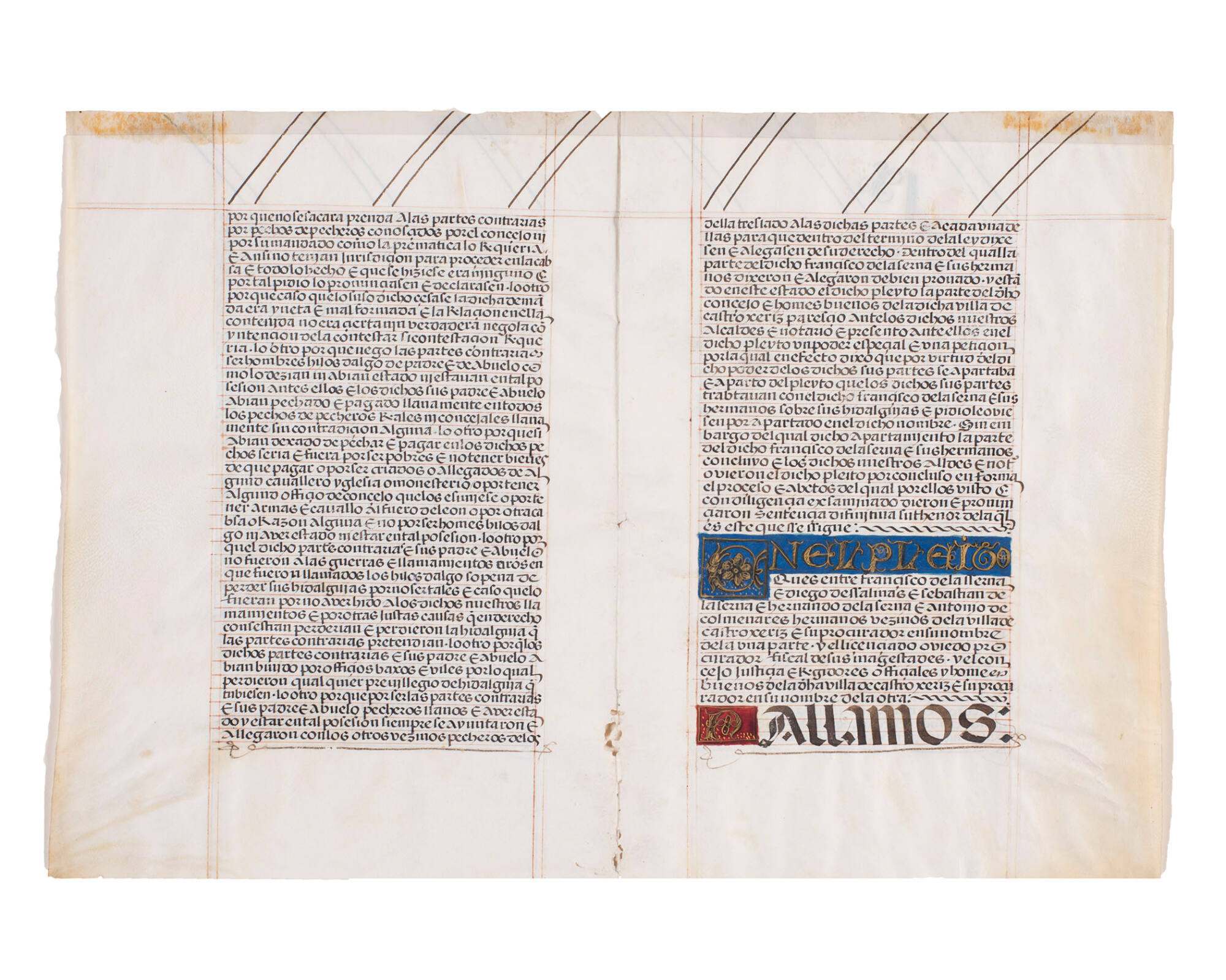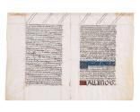Label TextToday’s technology allows us to write or copy text within seconds, but this was not always the case. In Europe, books were handwritten until the mid-15th century when Johannes Gutenberg invented the printing press. The printing press was a quicker and less costly method of creating and copying the written word. Although wealthy patrons occasionally commissioned handwritten manuscripts after the invention of the printing press, creating manuscripts by hand soon became a fading art. This manuscript was created after the invention of the printing press. Copied by hand, it displays an attractive style of writing called calligraphy, derived from the Greek word kallos and graphē (“beautiful” and “writing”). Monks, the principal calligraphers, used a steady, precise hand to create visual beauty honoring God. The precious gold letters highlighted on a blue or red background further honored God. Well-defined gridlines, marked in red ink, indicate the margins where the scribe had to fit their crisp, exact text creating evenly spaced unity and grace.Published ReferencesGwara, Scott, Otto Ege's Manuscripts: a Study of Ege's Manuscript Collections, Portfolios, and Retail Trade with a Comprehensive Handlist of Manuscripts Collected or Sold, Cayce, SC, De Brailes Publishing, 2013, fig. 31, p. 207, repr. p. 243.late 14th, early 15th C