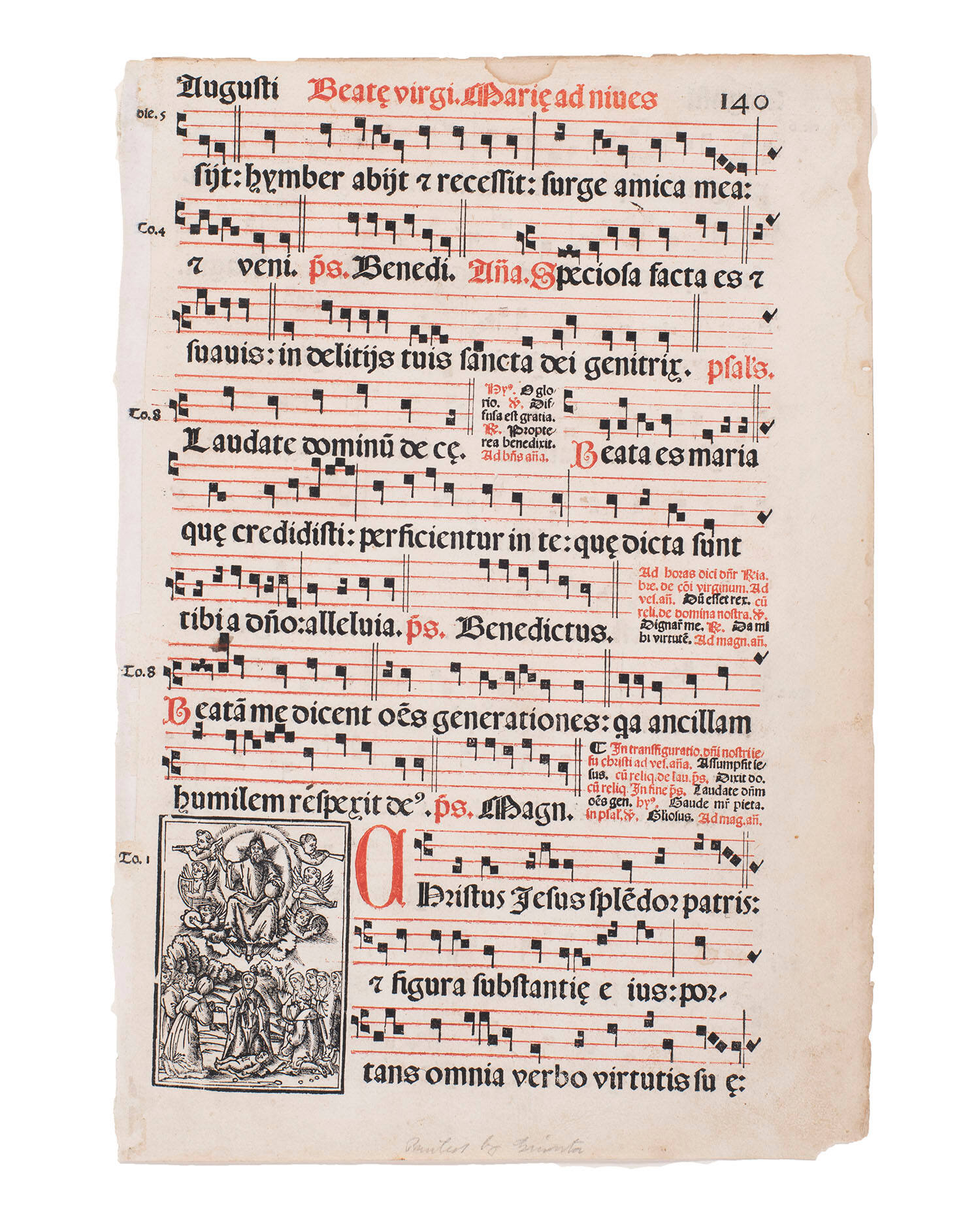 DescriptionPrinted with movable type in two impressions; 4-line staff in red