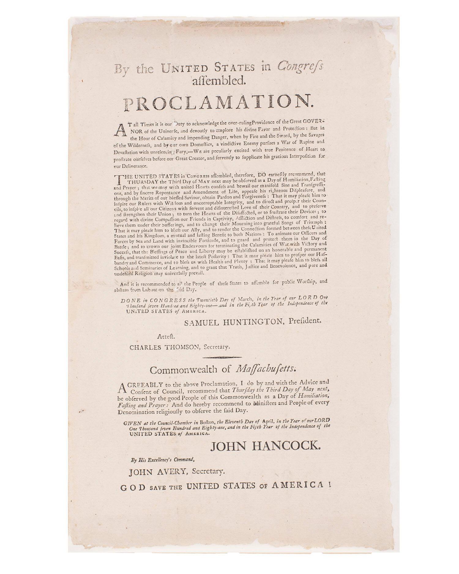 Broadside. "Proclamation by the U.S. in Congress Assembled".