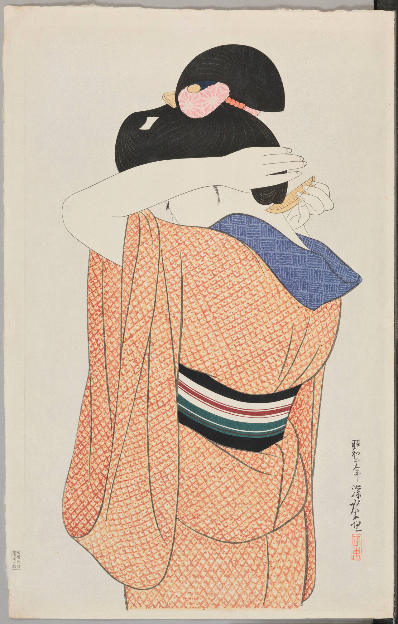 Published ReferencesPutney, Carolyn M., Kendall H. Brown, Koyama Shuko, and Paul Binnie, Fresh Impressions: Early Modern Japanese Prints, Toledo, Toledo Museum of Art, 2013. repr. (col.) pp 93Exhibition HistoryToledo, Toledo Museum of Art, A Special Exhibition of Modern Japanese Prints, March 2-March 30, 1930, repr. pl. 19.