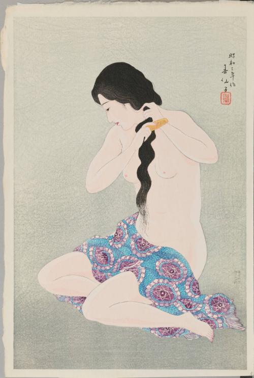 Combing the Hair, from “Three Figures of Beauties by Shunsen”
