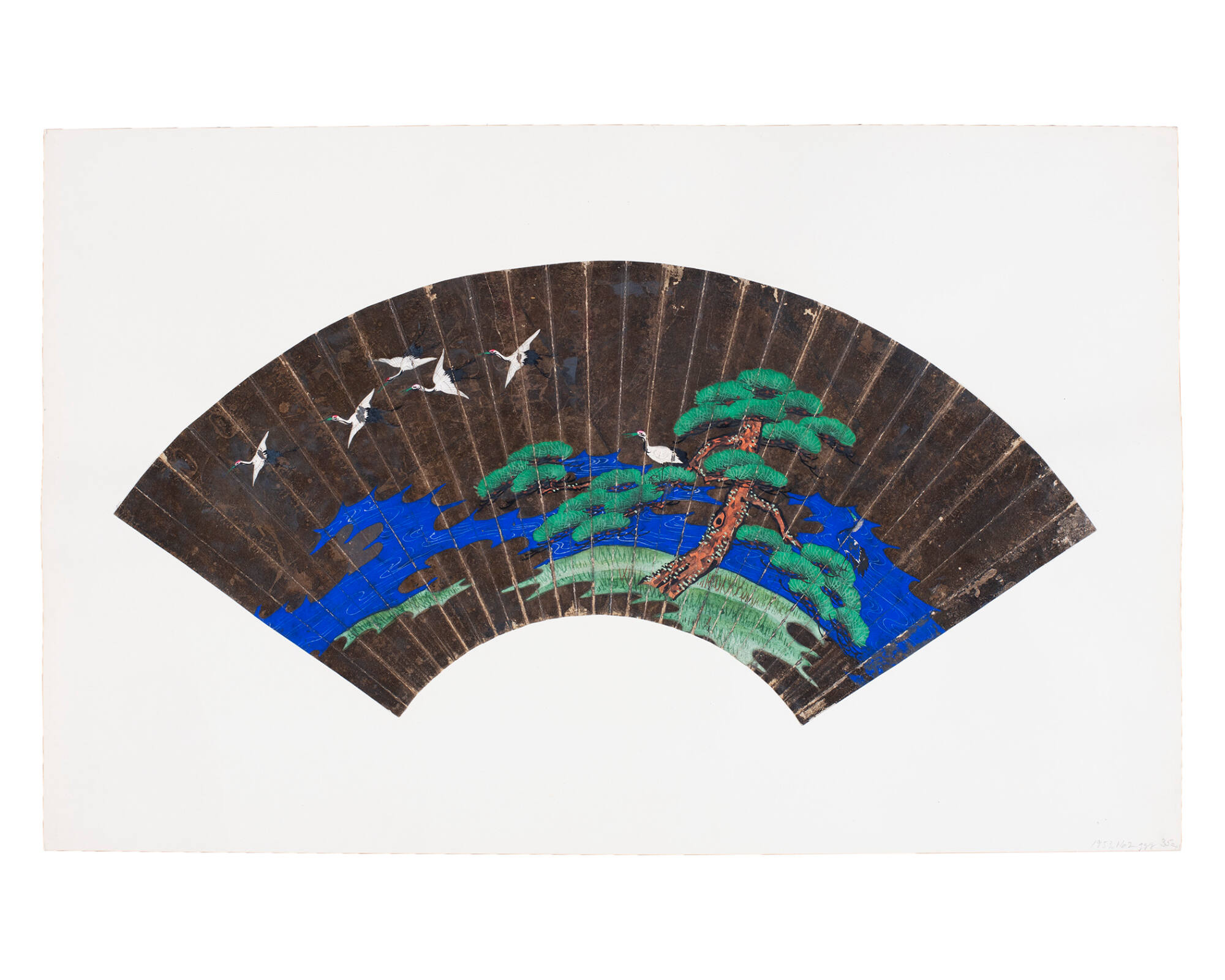 Fan Painting: Storks, Pine Tree and Water